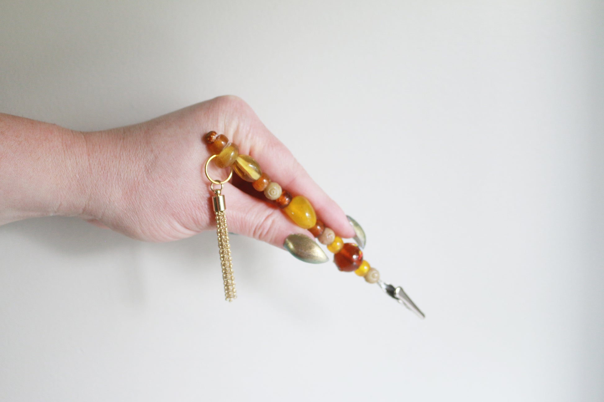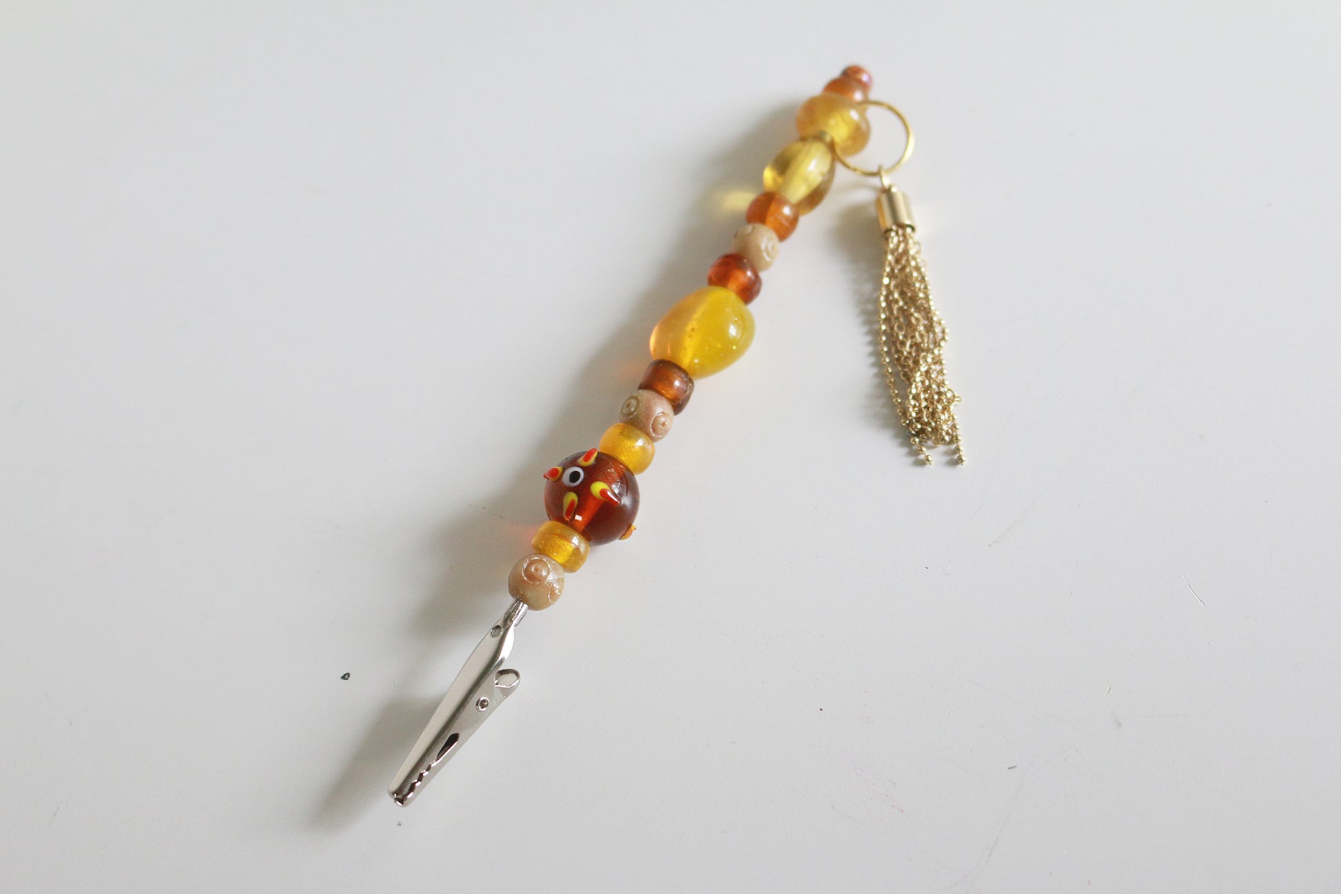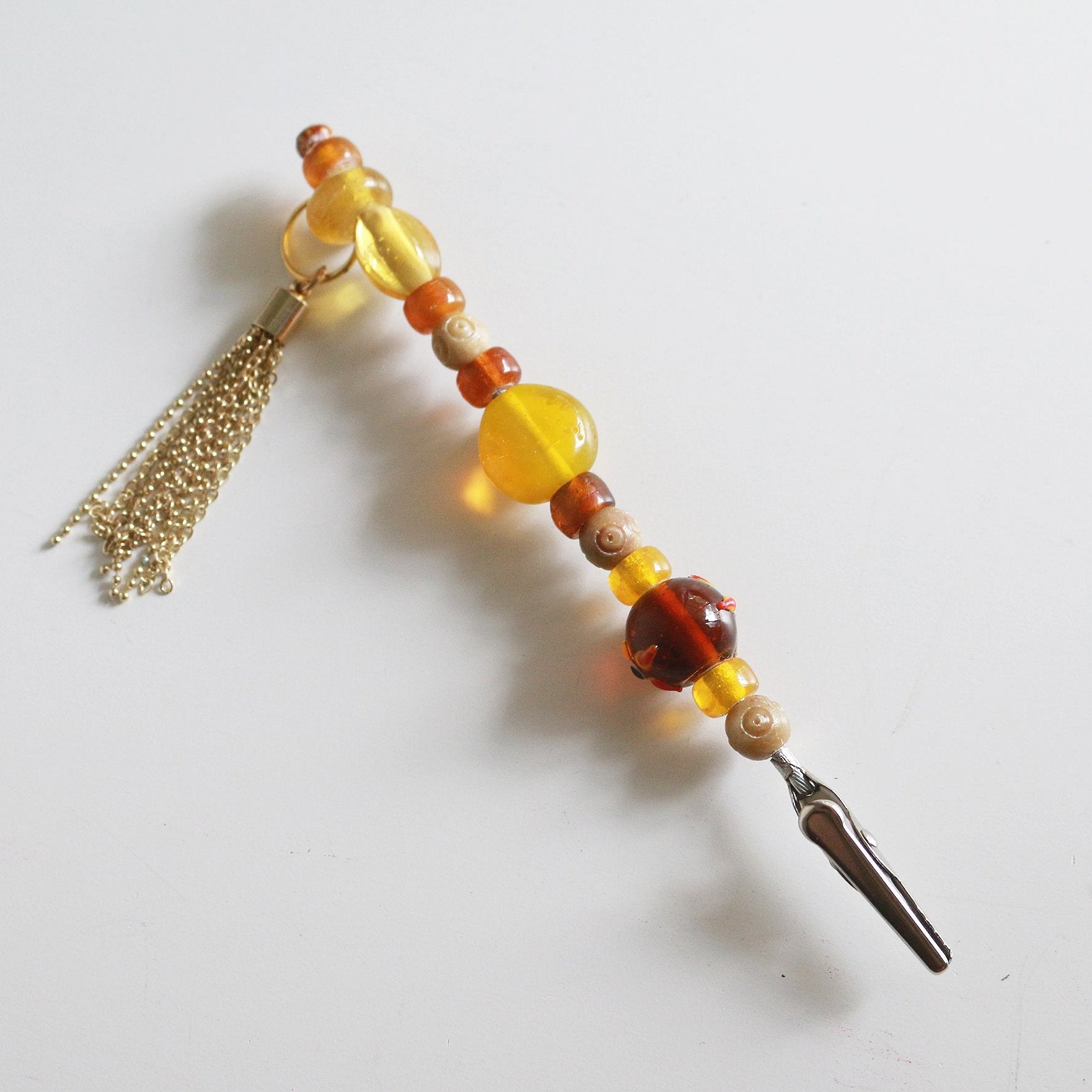 Handmade at 6" long with a dangle end piece, hanging at 2" long. Each clip is hand beaded with high quality glass beading.