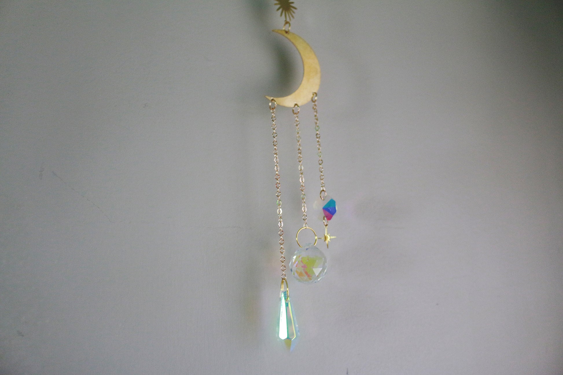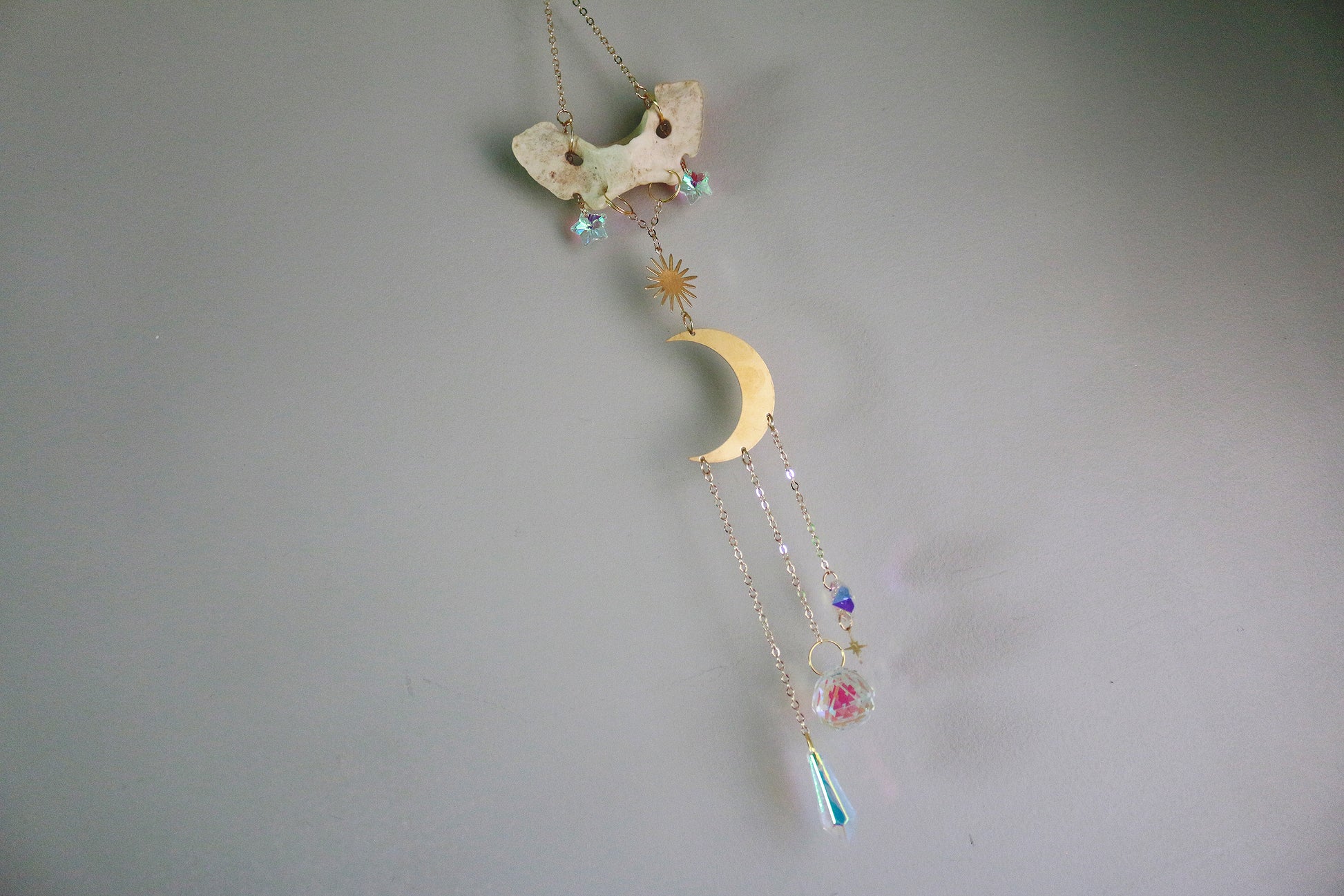 This unique, one-of-a-kind, handmade suncatcher was created from ethically sourced coyote atlas. It features high quality chandelier crystals.
