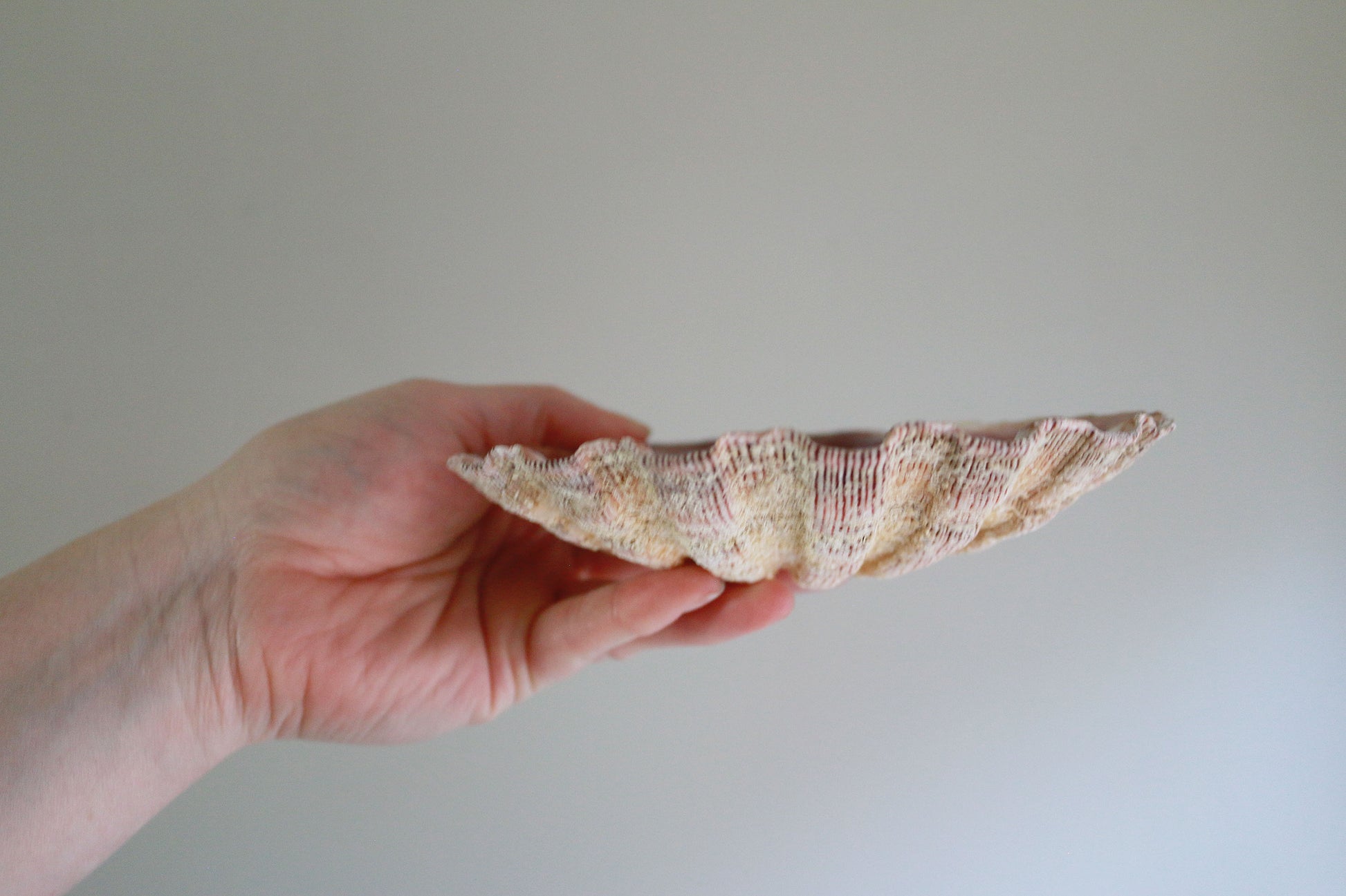 Lion Paw Clam Smudge Shell is used to burn loose herbs or sage. Each shell is approximately 6" wide.