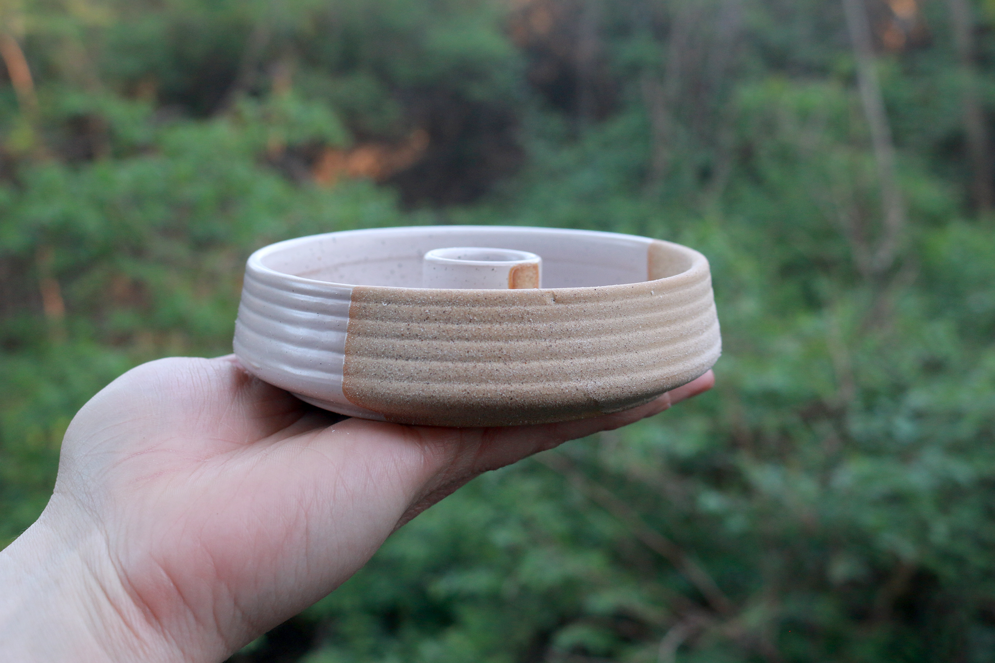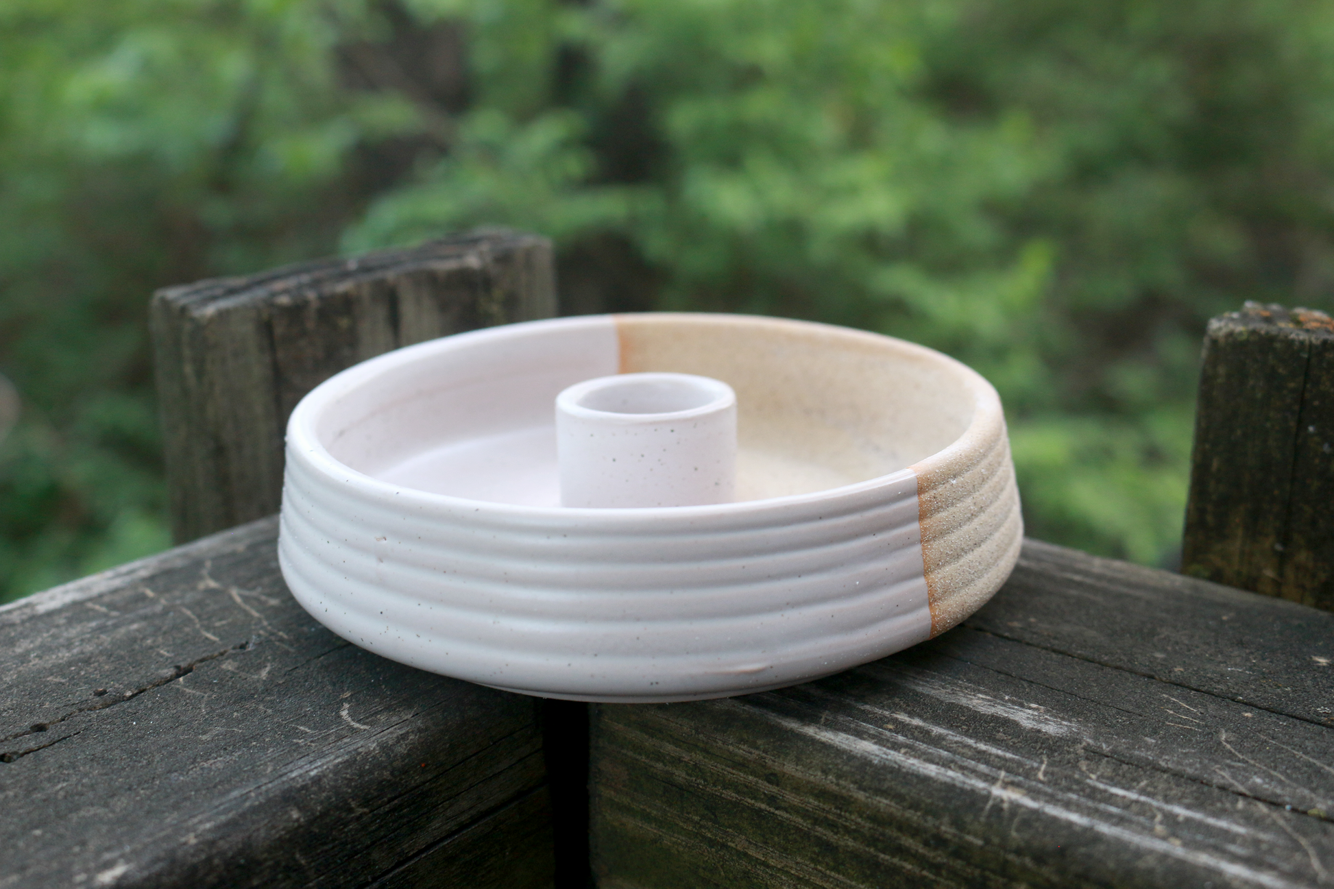 Ceramic 4" Palo Santo Burner Palo Santo Burner holds Palo Santo smudge sticks upright while the saucer collects falling ash Looks beautiful sitting on a desk or altar and can be easily carried throughout the home, allowing the smoke to bless every inch of ones space.