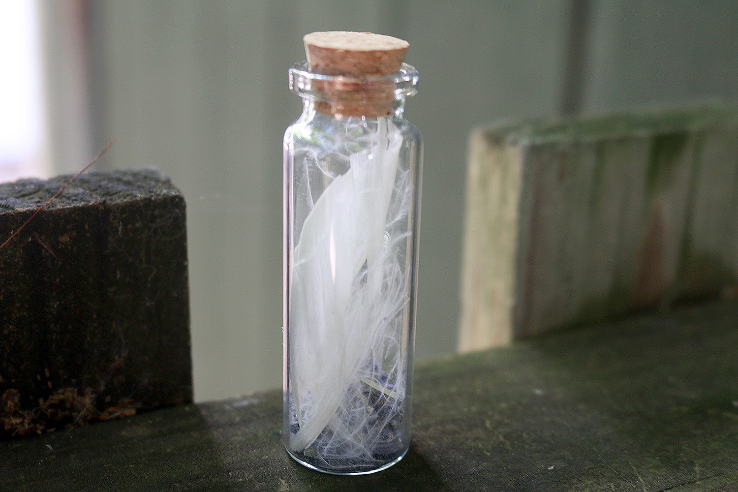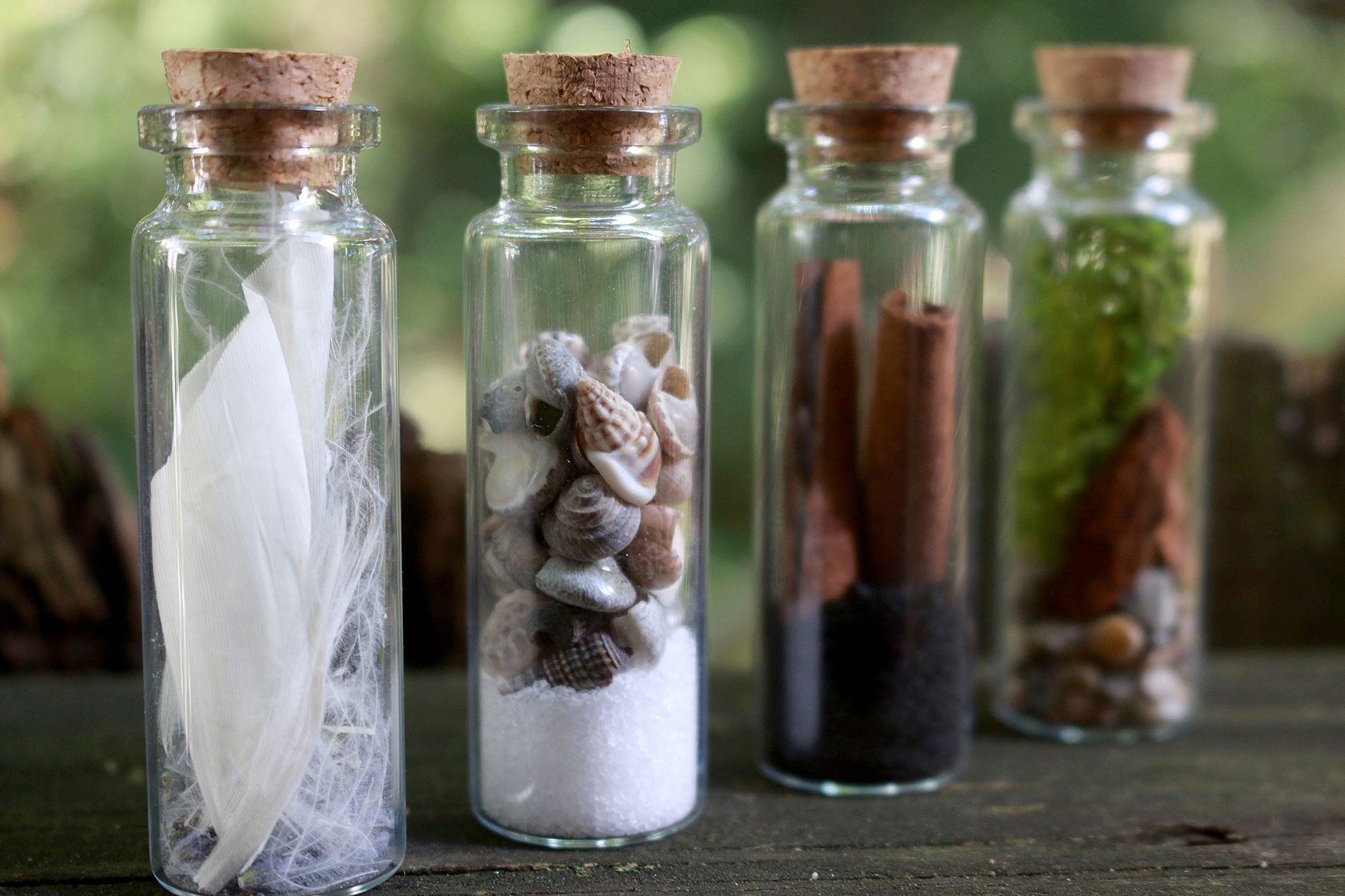 Each glass jar packed with intention is 2 and a half inches tall by 1 inch with a cork stopper. Perfect size for an altar or ritual space!