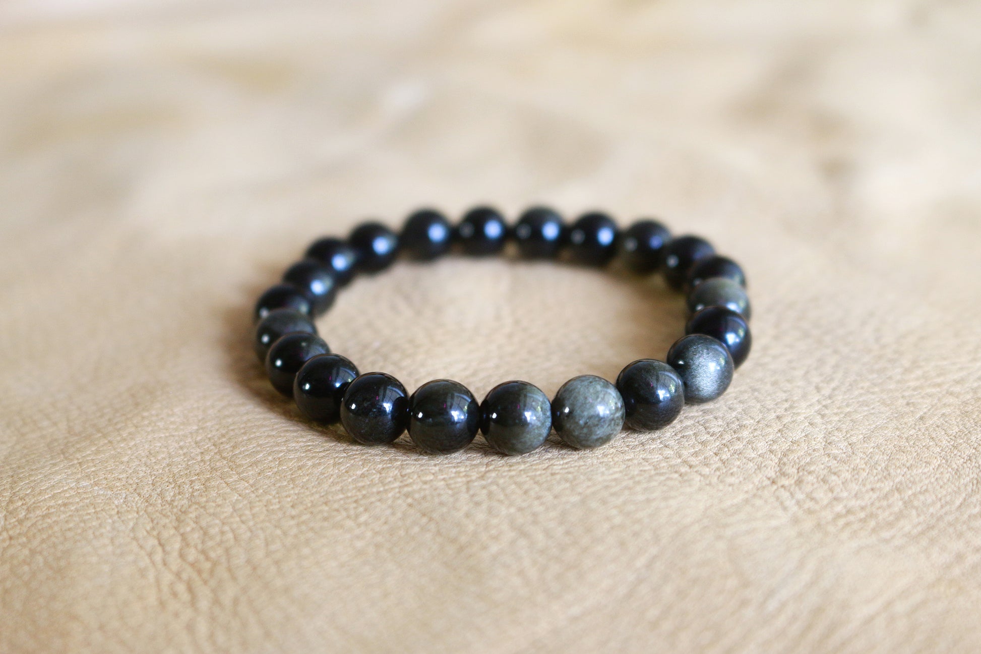 Stretch fit 8mm Gold Sheen Obsidian bracelet.