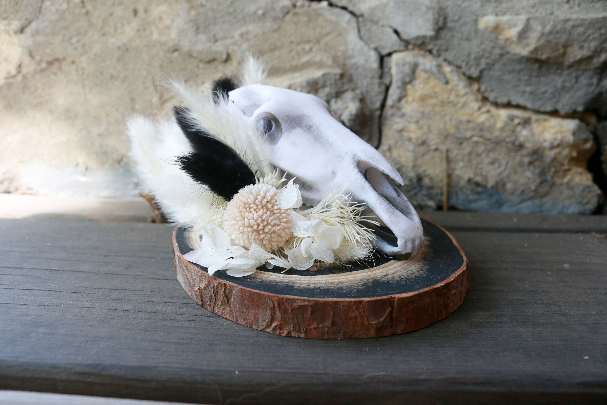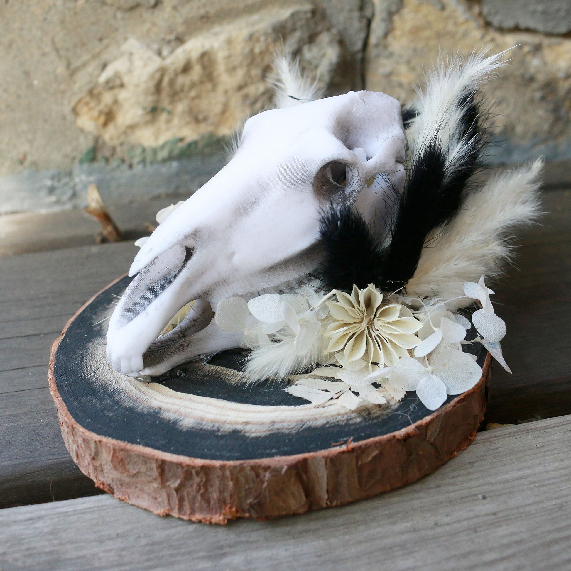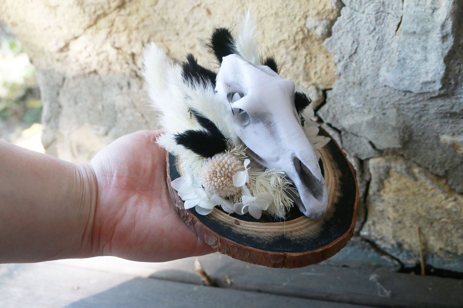 Grim Faux Horse Skull Floral Plaque - Original Art