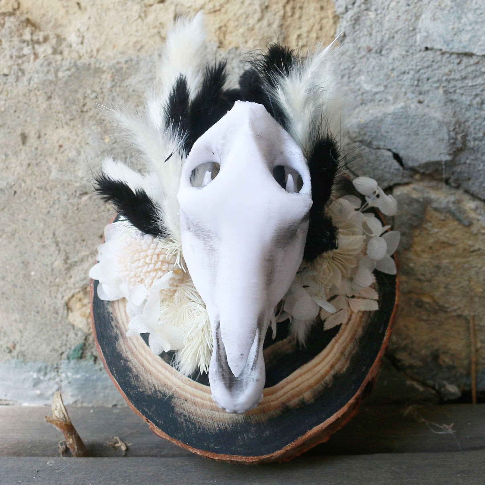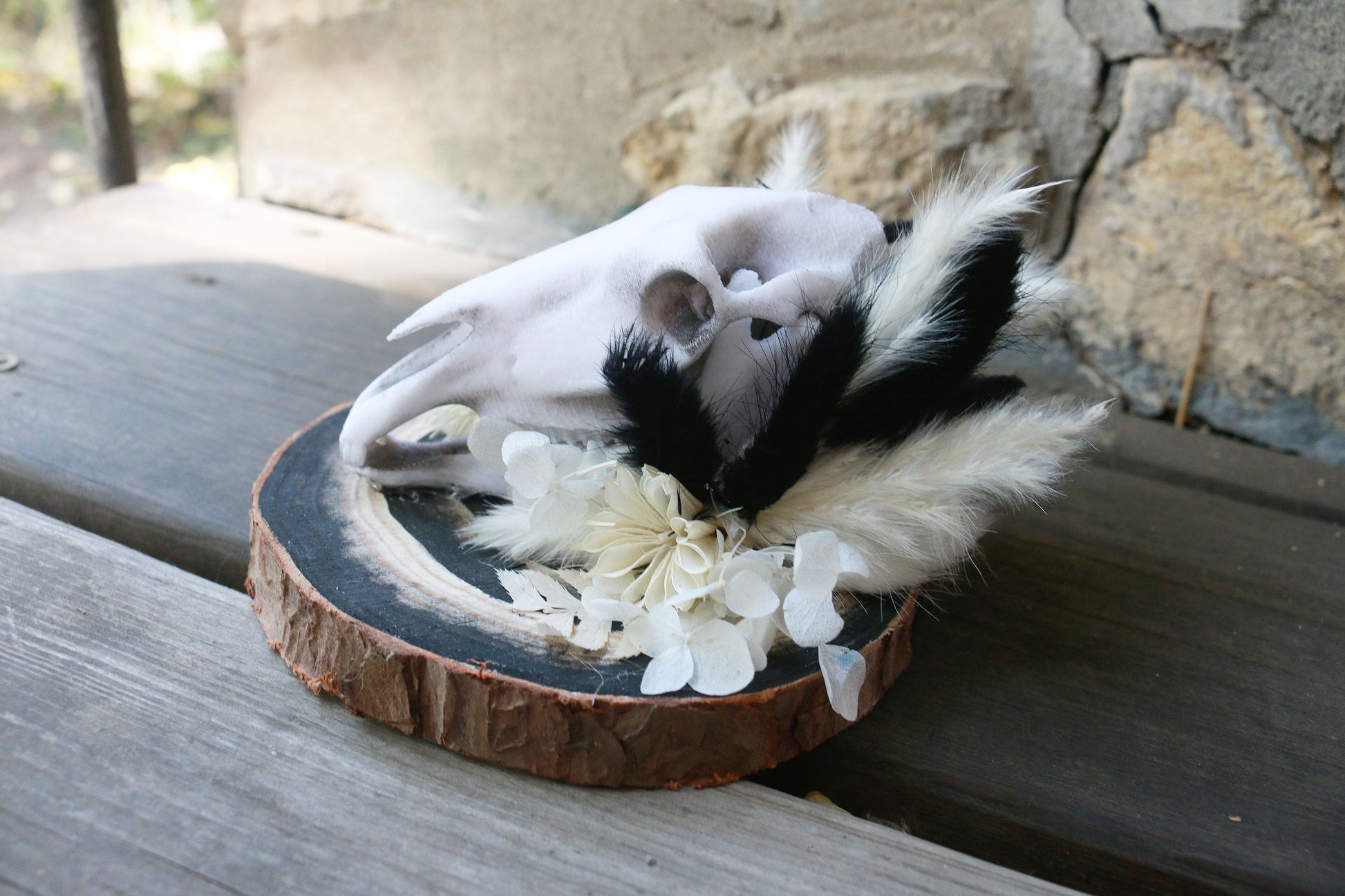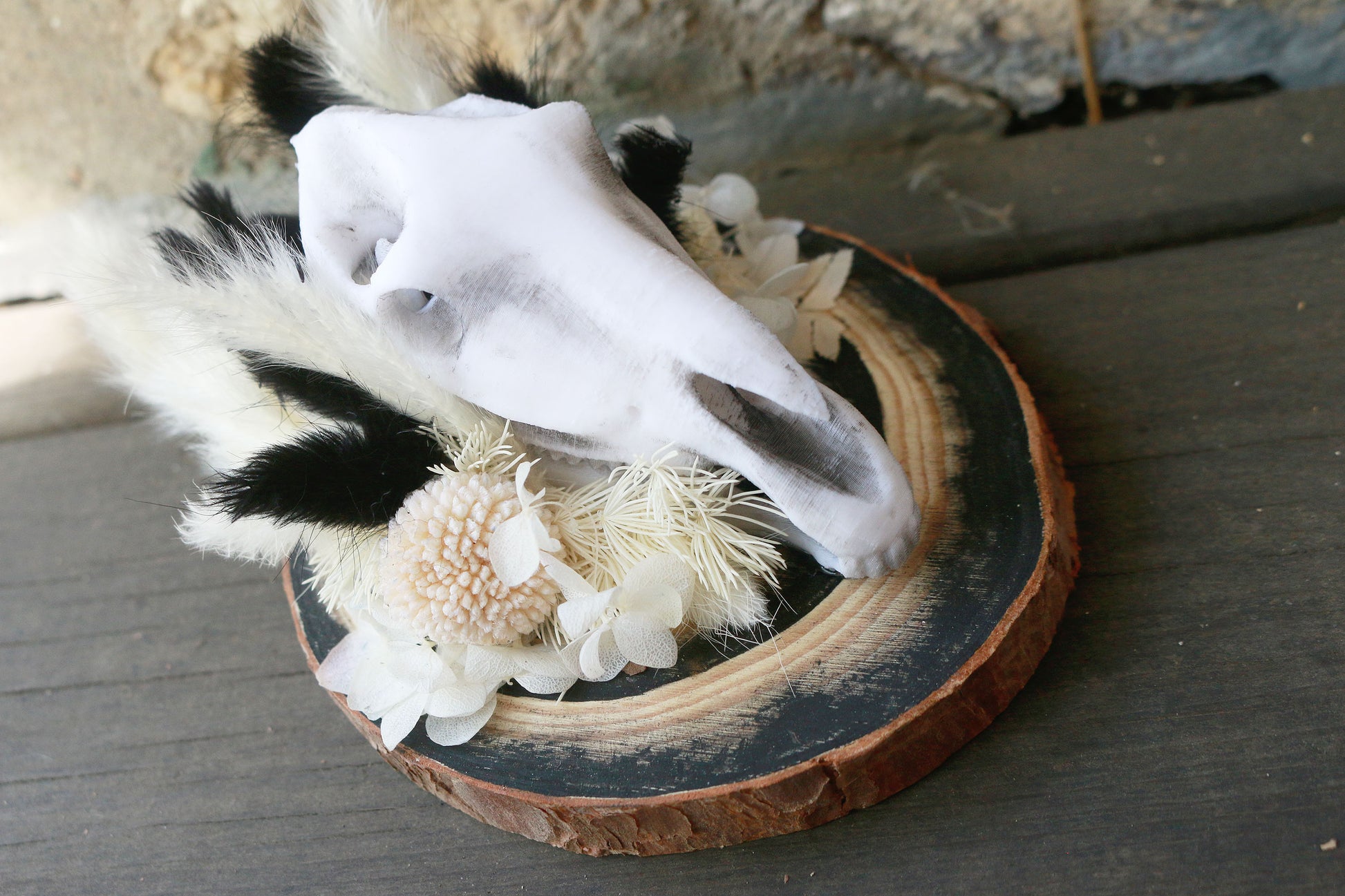 Grim Faux Horse Skull Floral Plaque - Original Art