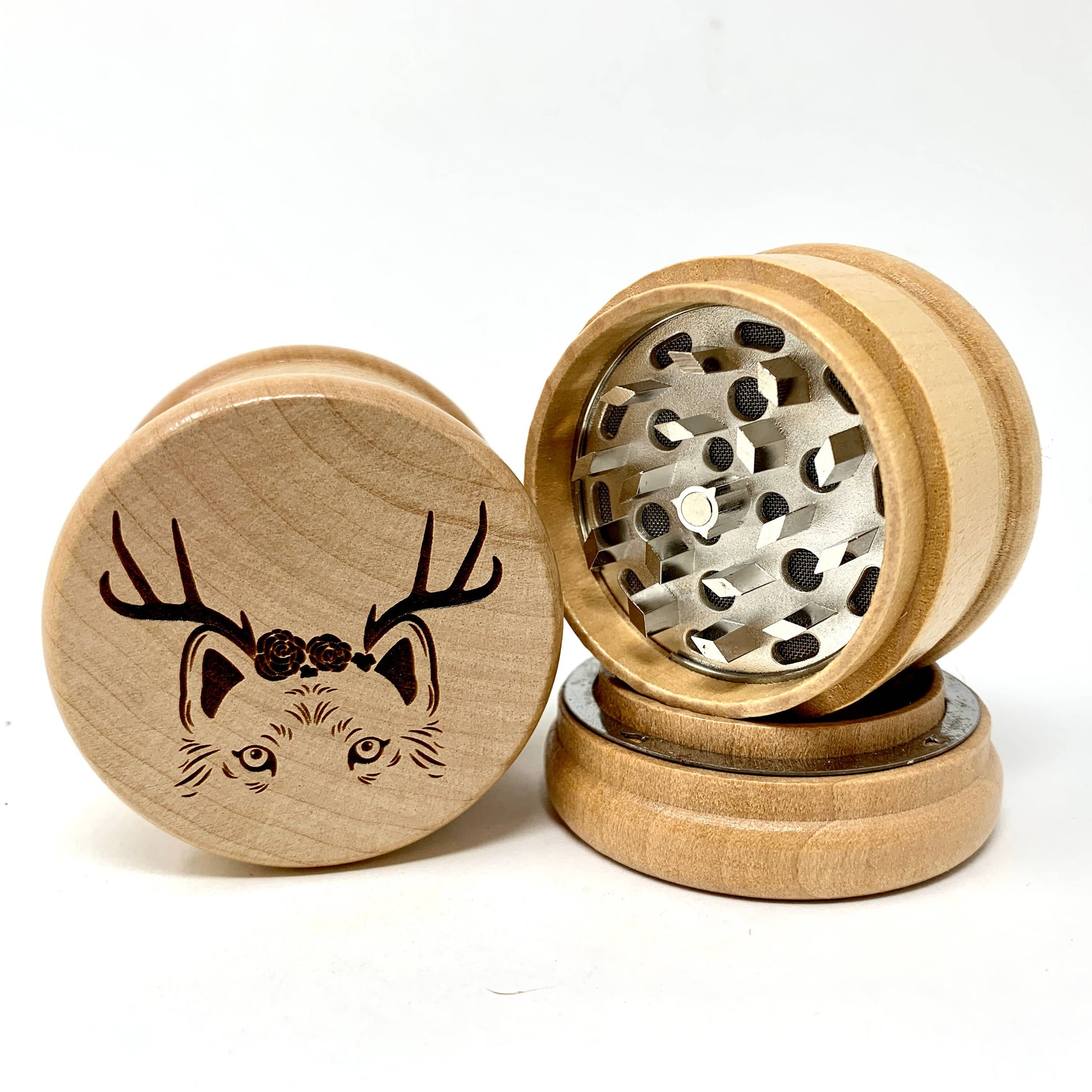 Our all wood herb flower grinders measure approximately 2.3" in diameter and 1.8" tall. Compact but plenty large enough for grinding any herb, tobacco, or spice. Sharp teeth cut and grinder with ease. Strong Neodymium magnets hold it together and allow for easy disassembly.
