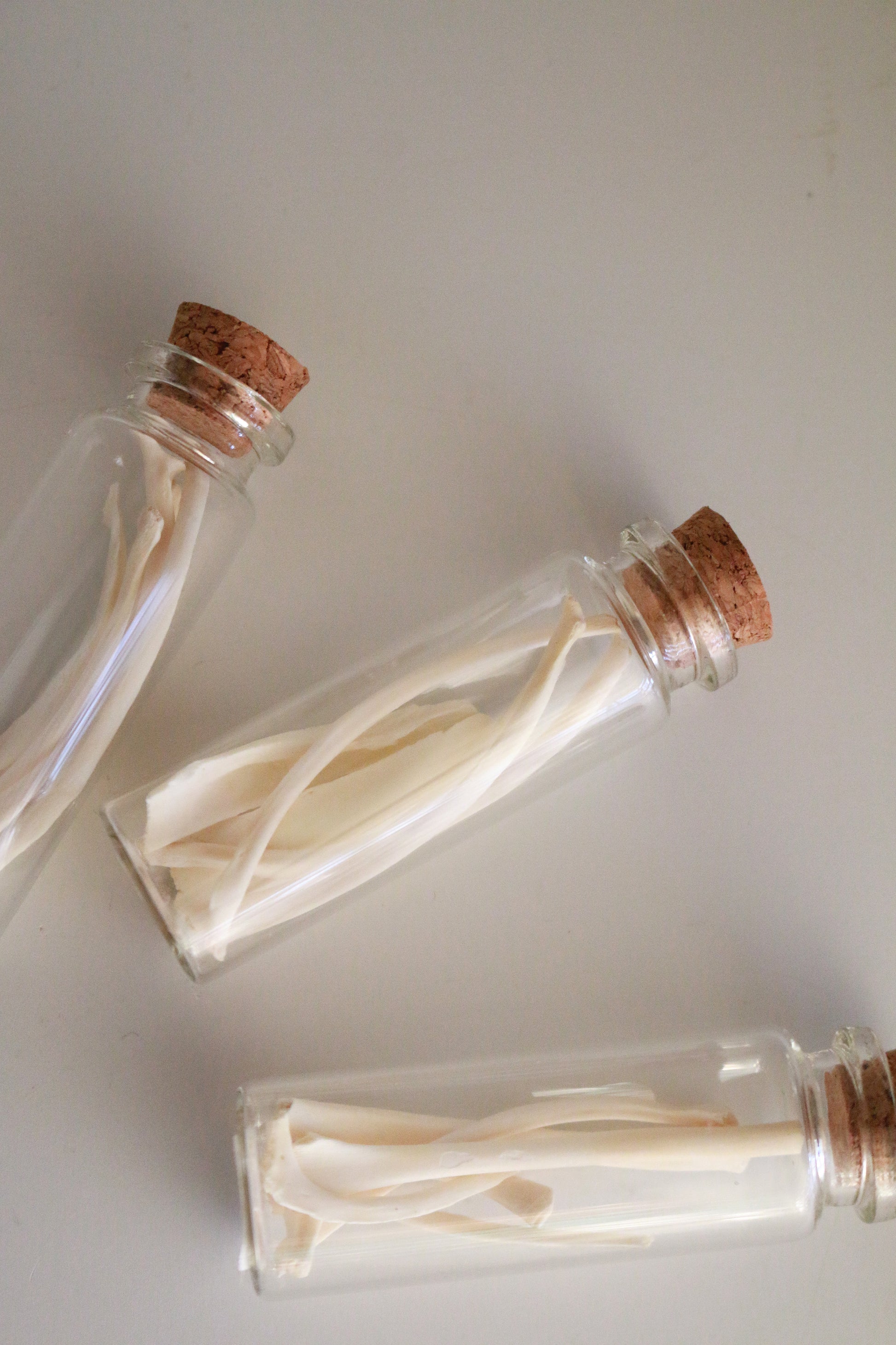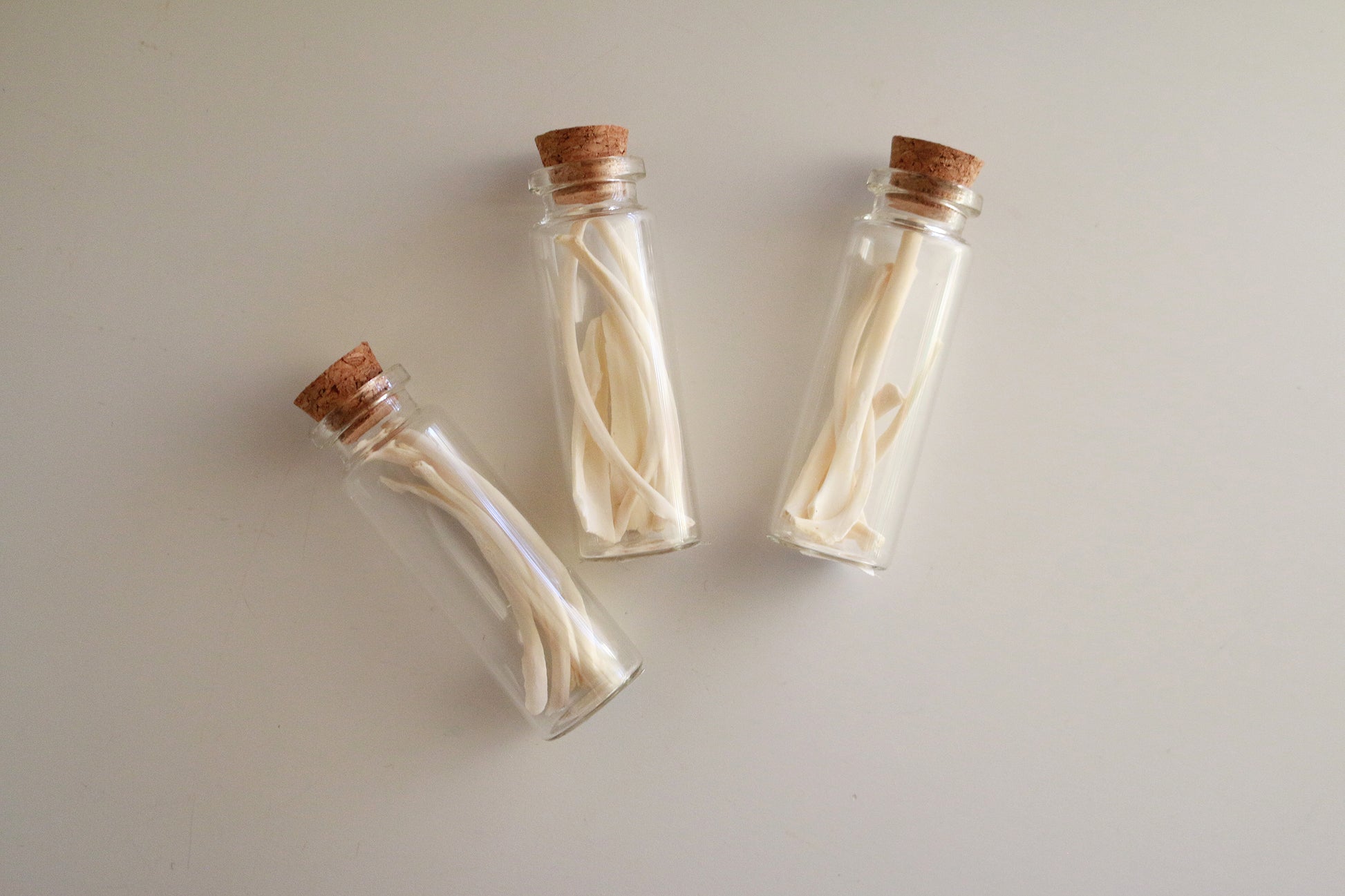 A small charming jar, 2.5" x 1", filled with small oddities & specimen: groundhog bones.