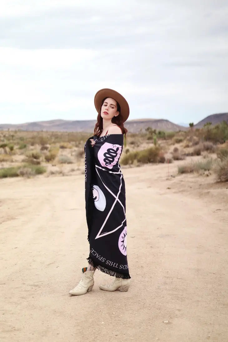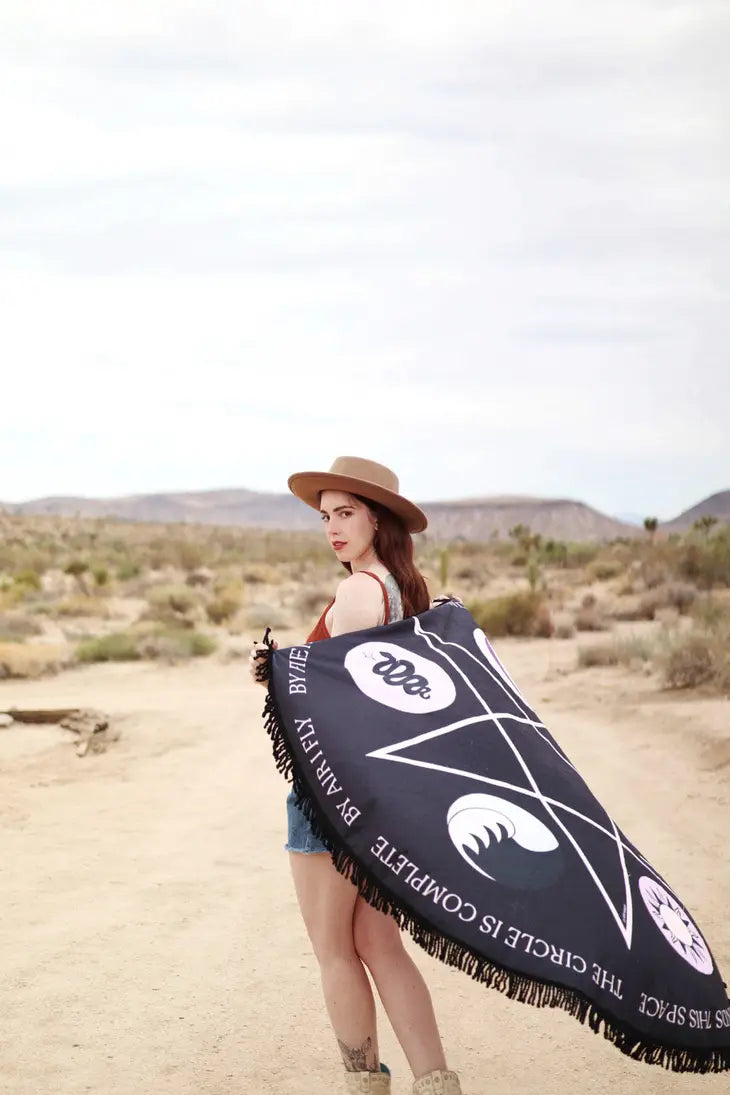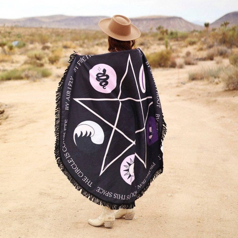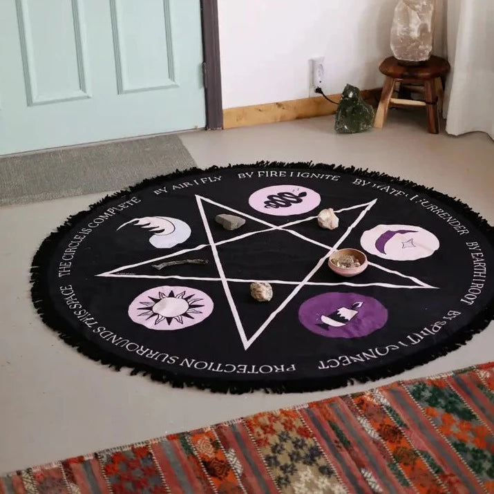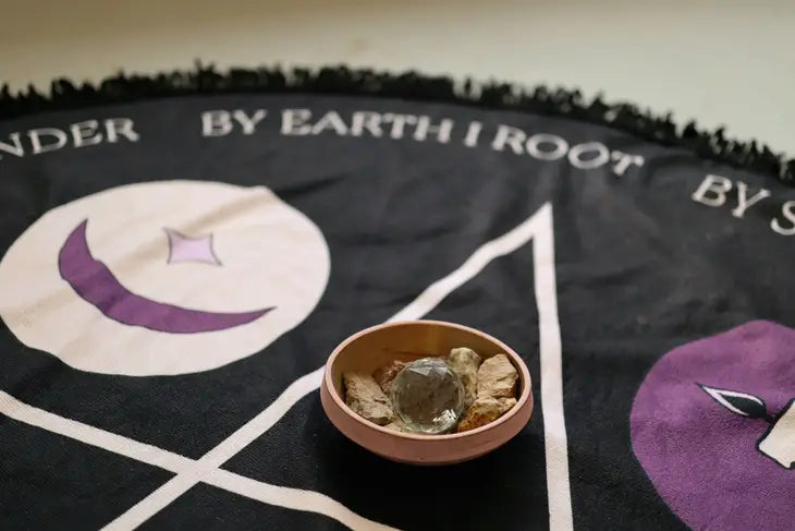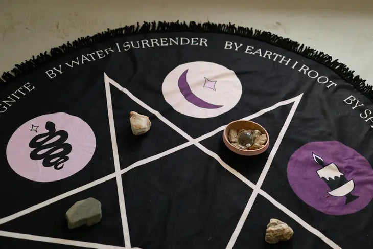Every witch deserves a safe space to practice their craft. We’ve dreamed up our Traveling Spell Space, a portable, multi-functional way to your rituals. Throw it in a tote bag to be used as a beach towel, for camping trips, festivals- it can even be a rug for a child’s room.
