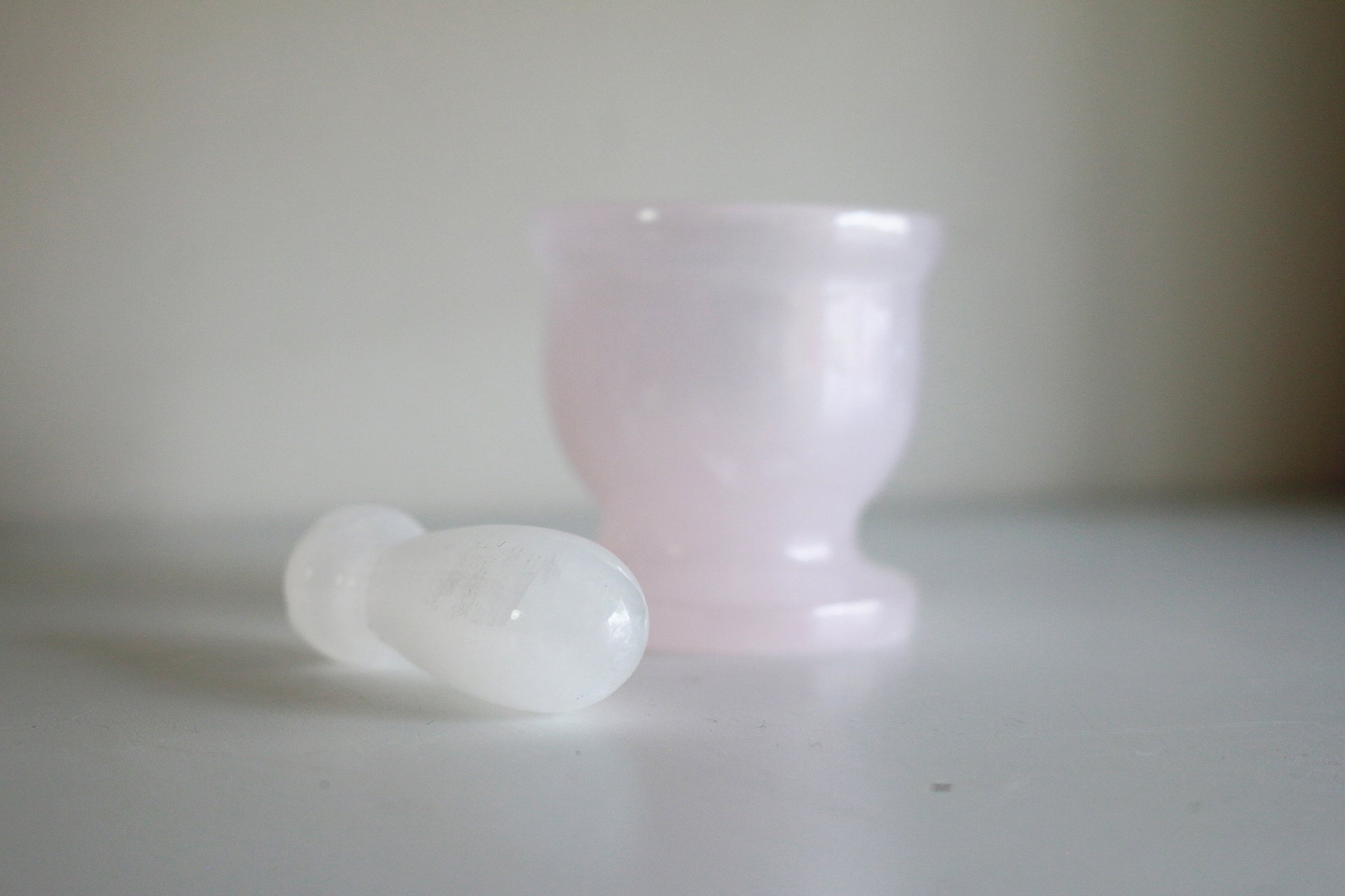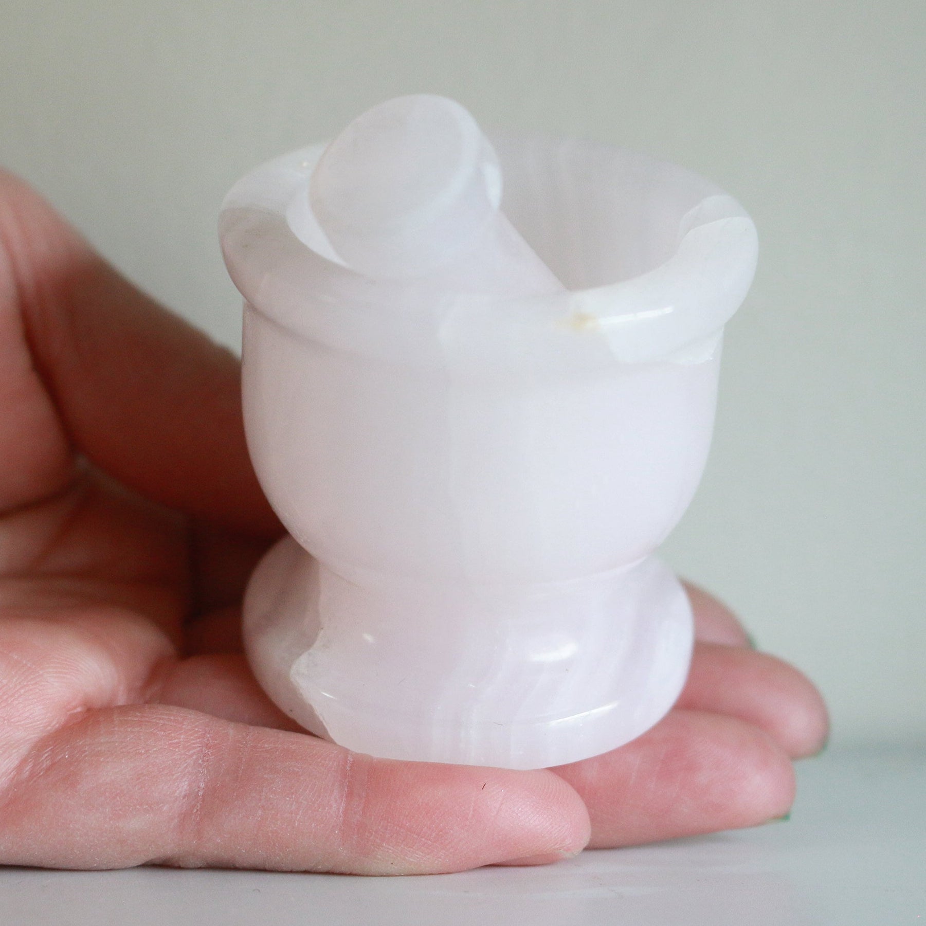 2 inch Mangano Calcite Mortar and 1.5 inch Pestle. UV light responsive!
