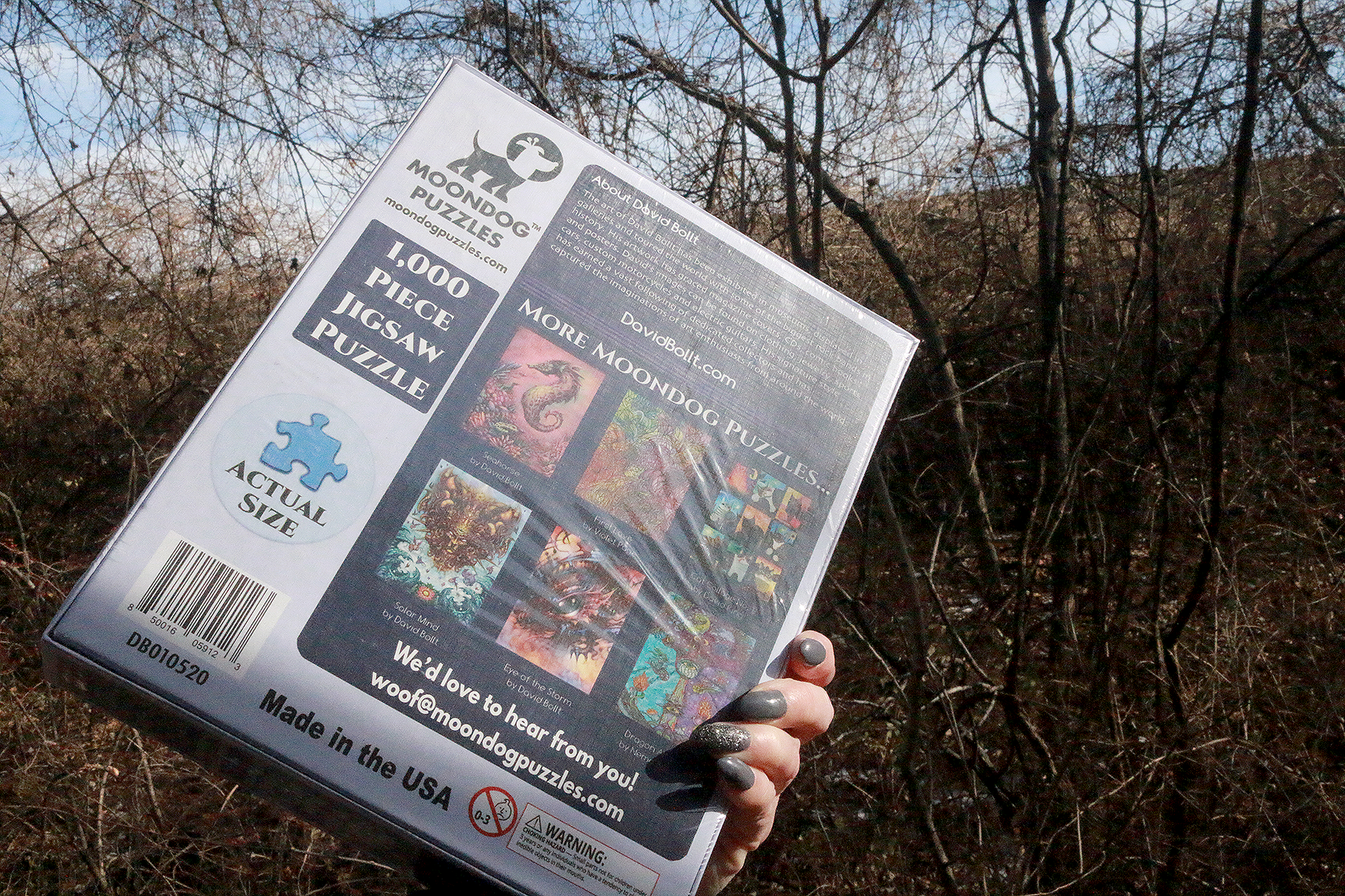 This 1000-piece puzzle features the otherworldly digital artwork of fantasy creator David Bolit. The finished puzzle measure 19.25" x 26.625". A perfect puzzle for anyone who enjoys Lovecraftian fantasy, cosmic horror, or science fiction.