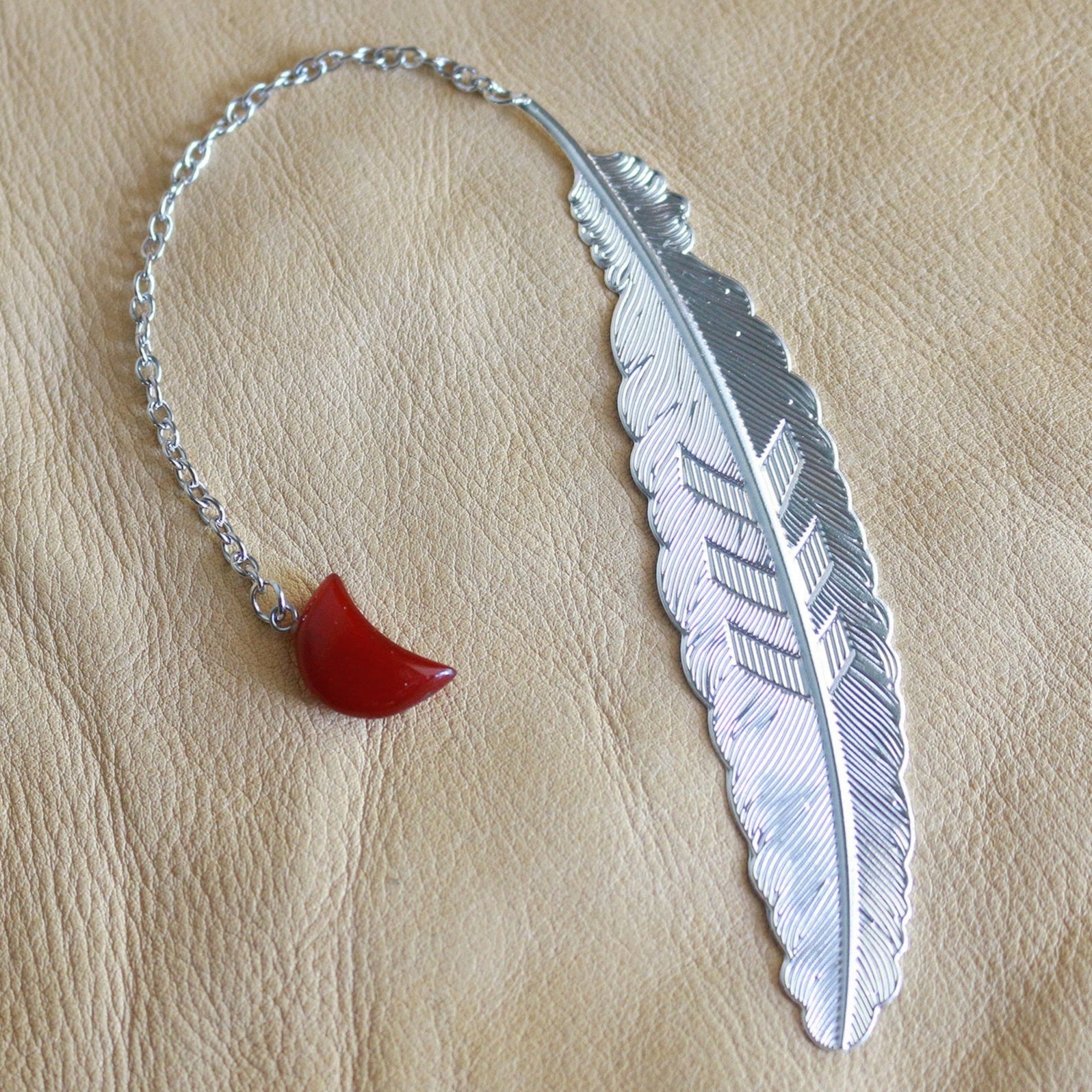 10 inch Feather Bookmark with stone moon (stone chosen at random).