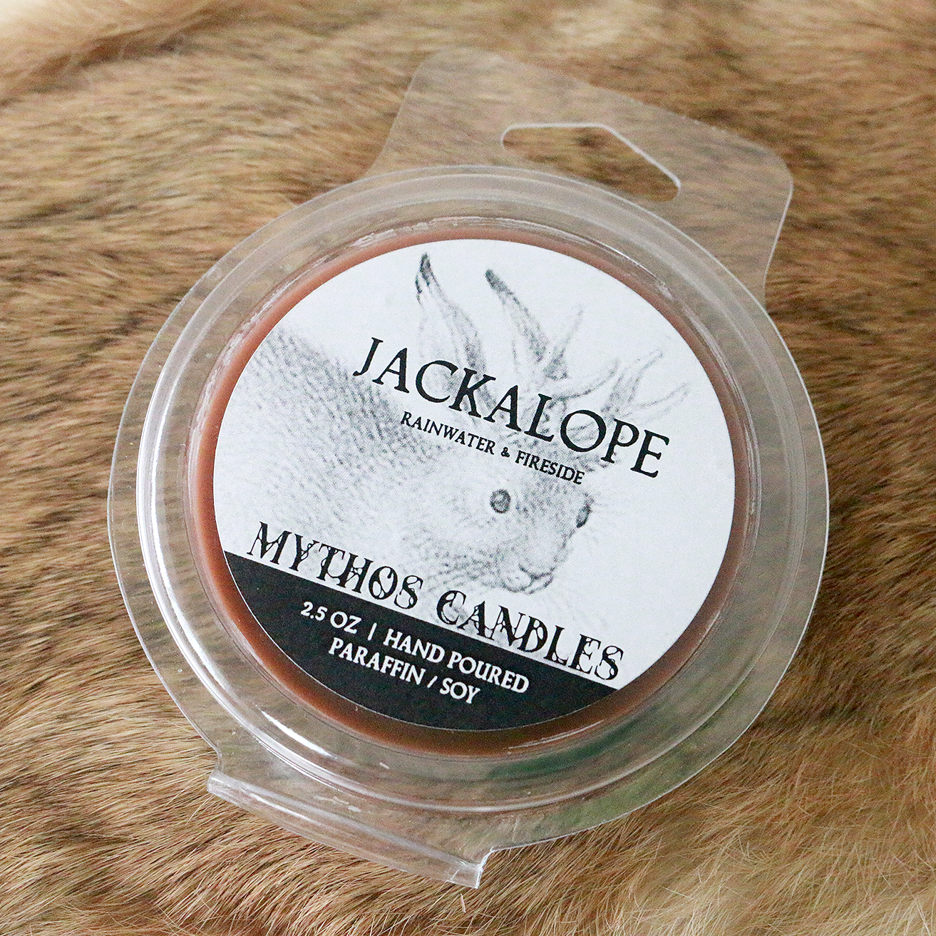 Mythos Candles 2.5oz Jackalope (Rainwater & Fireside) Paraffin/soy Wax Melts