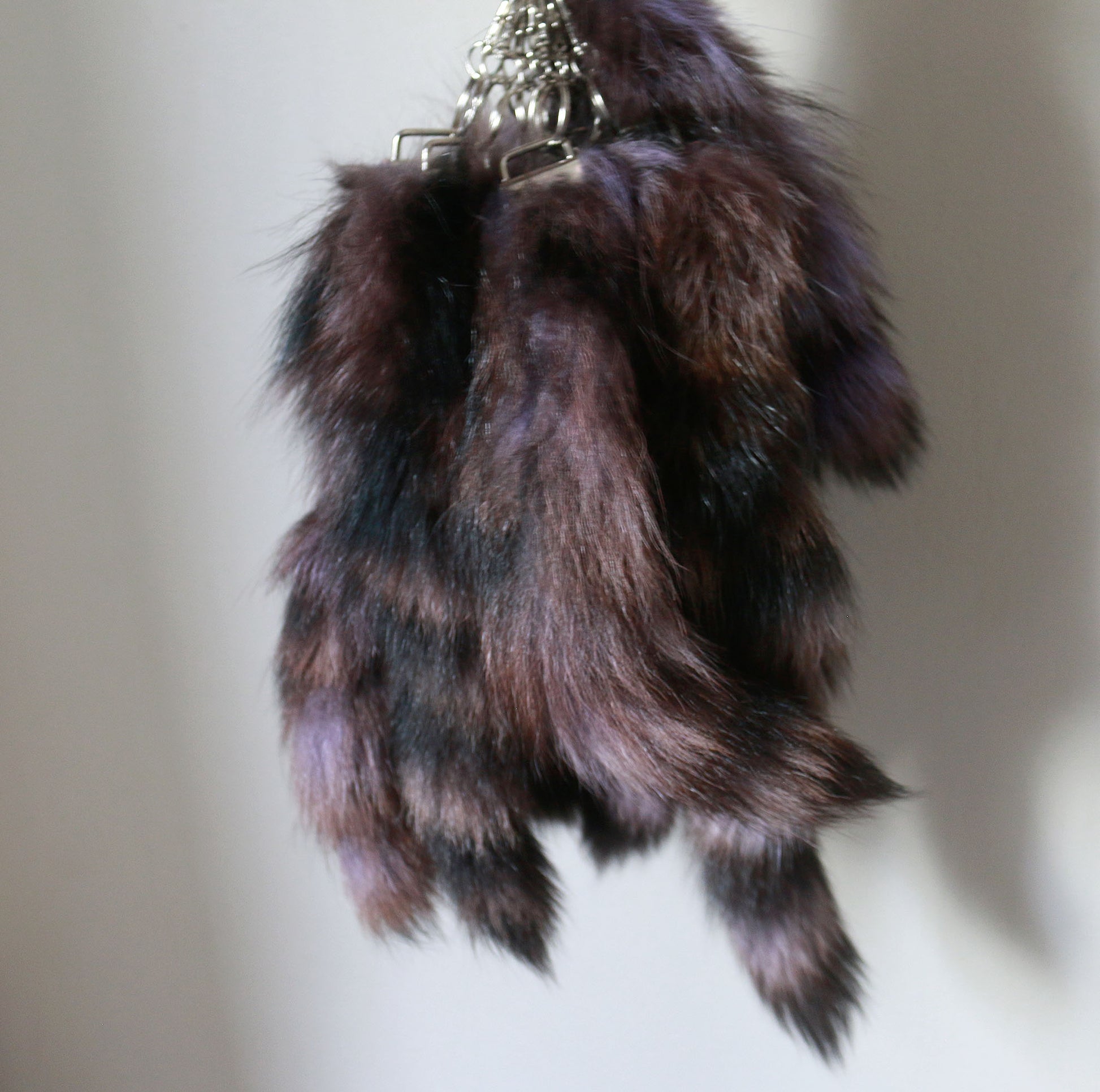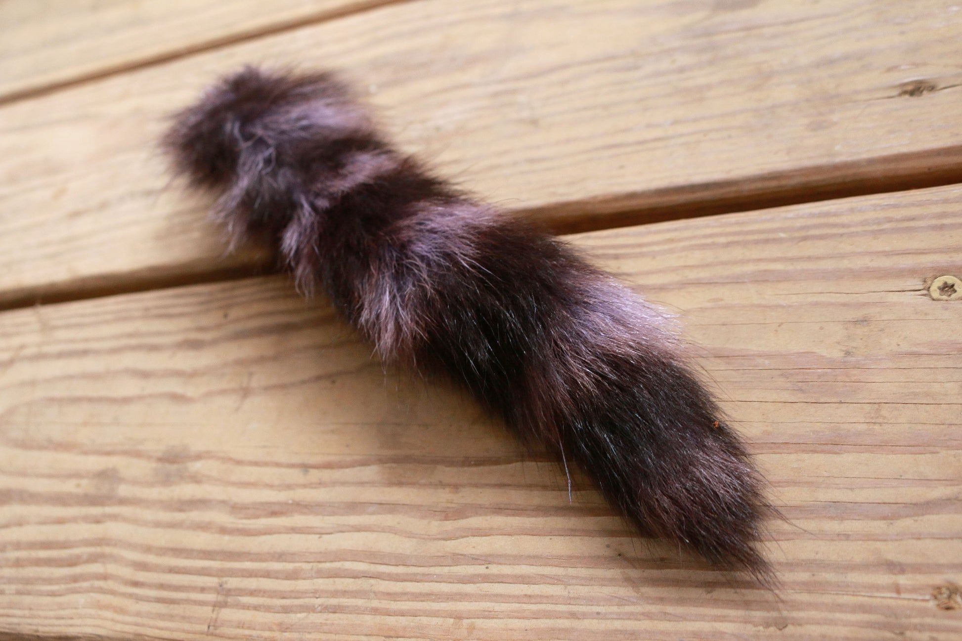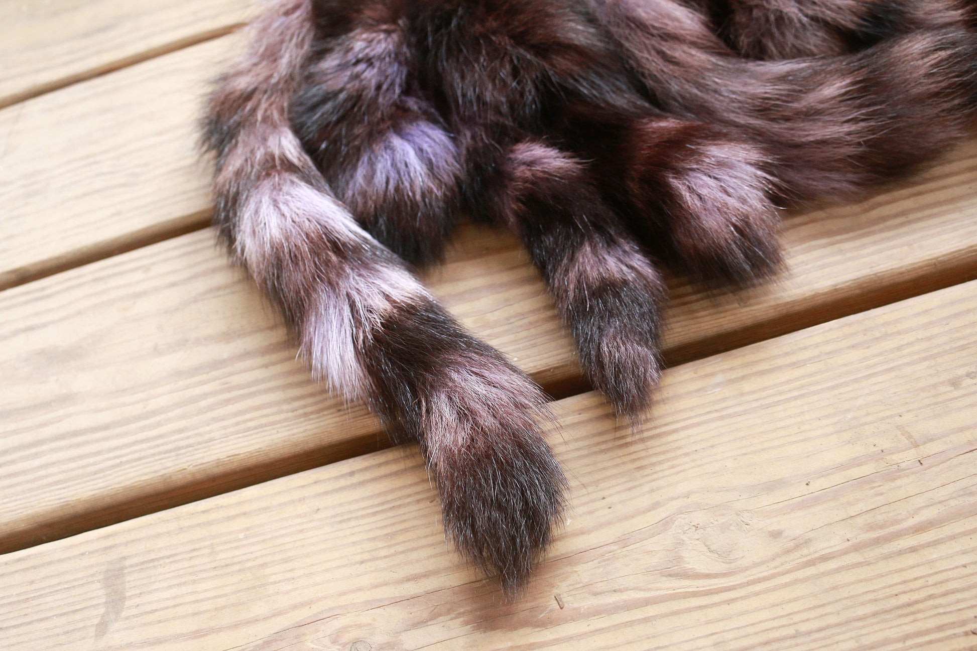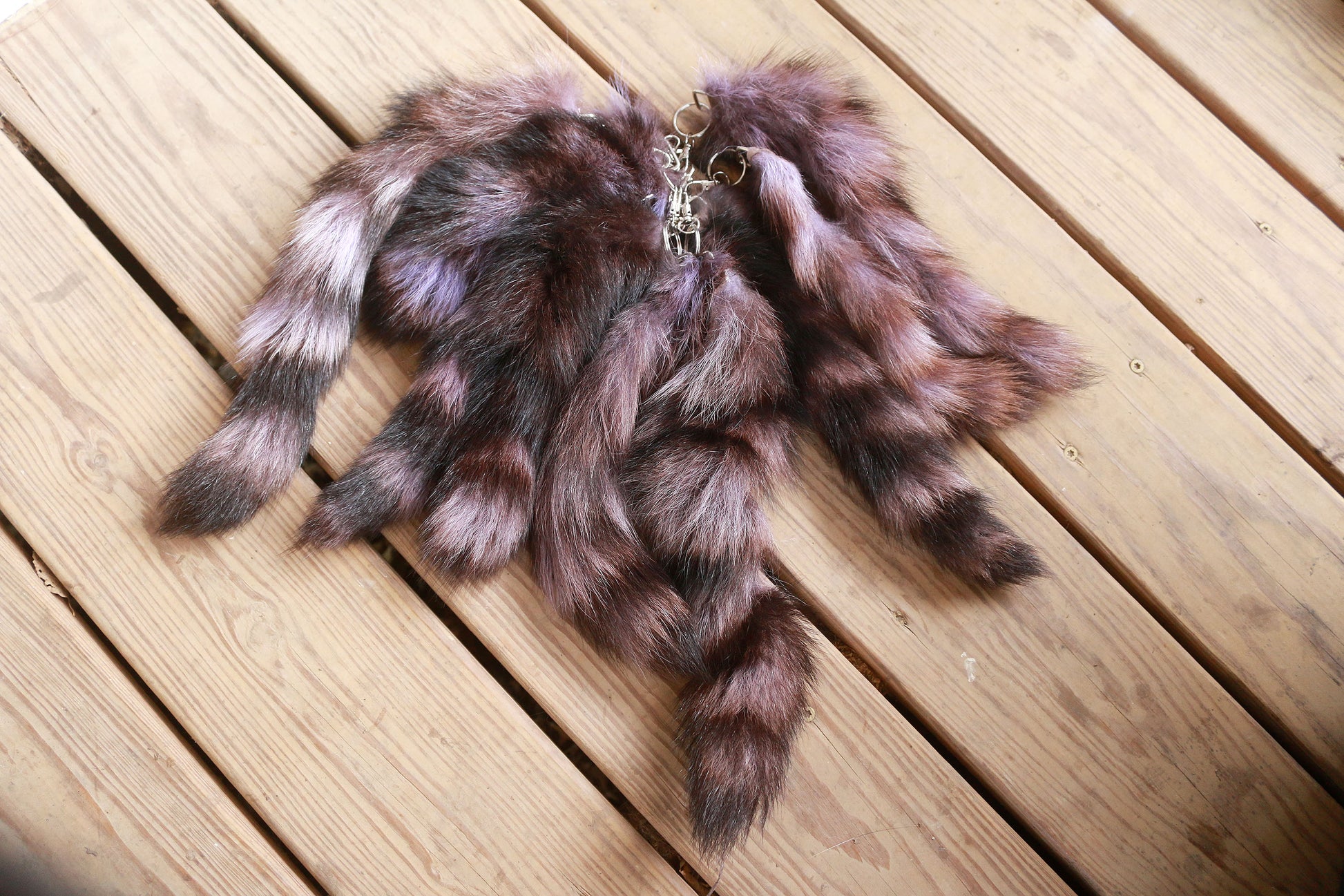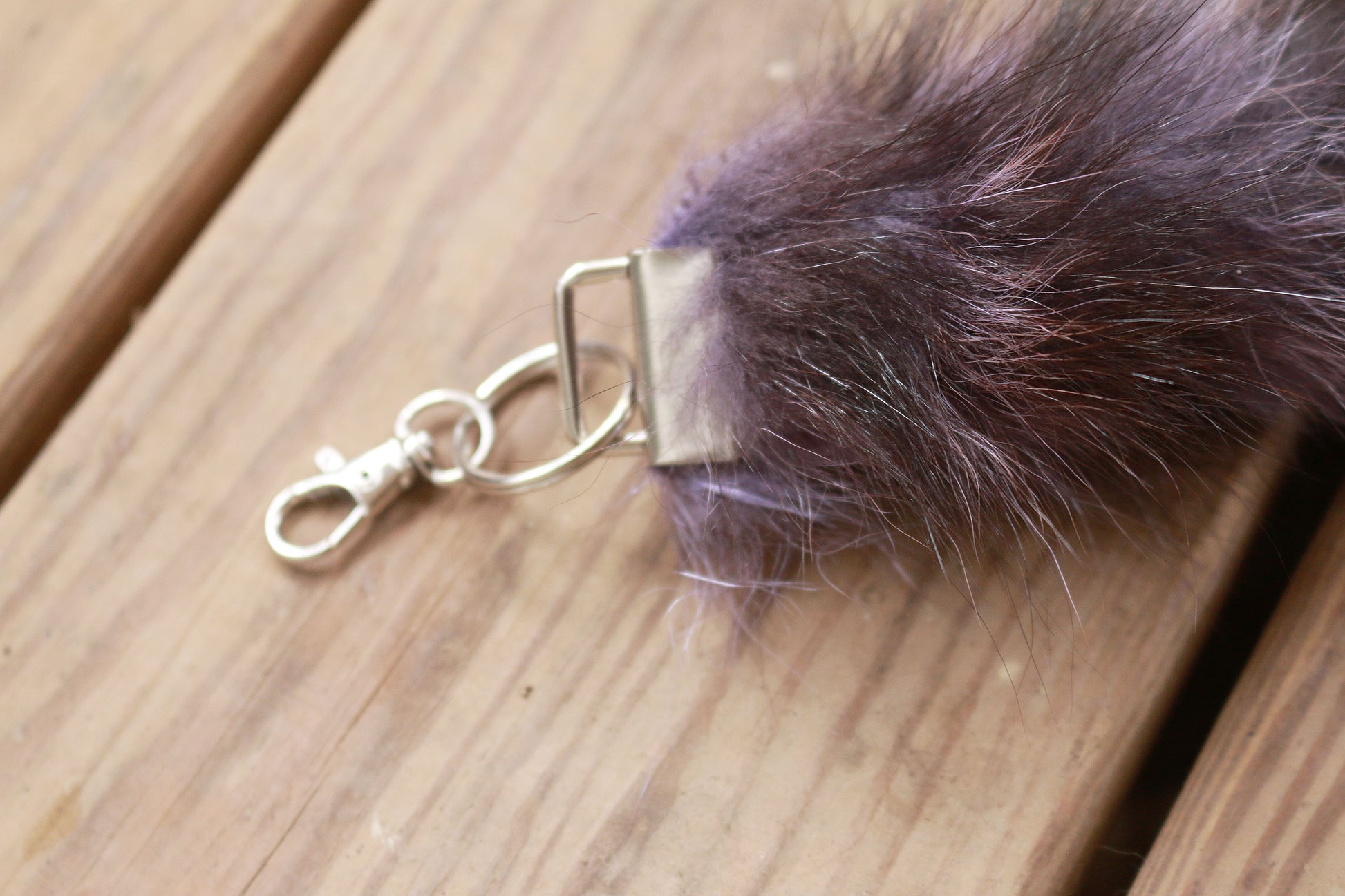 Professionally tanned dyed purple with keychain attached, each tail measures between 8" - 12" in length, not including the keychain.