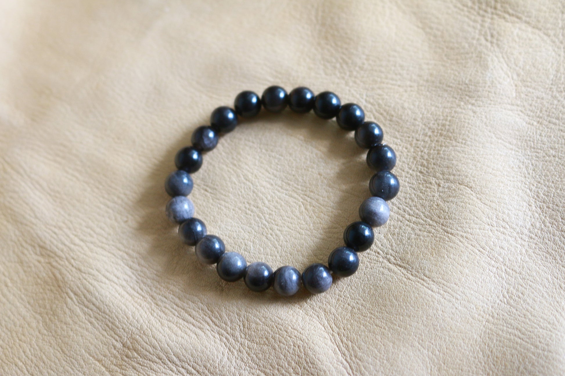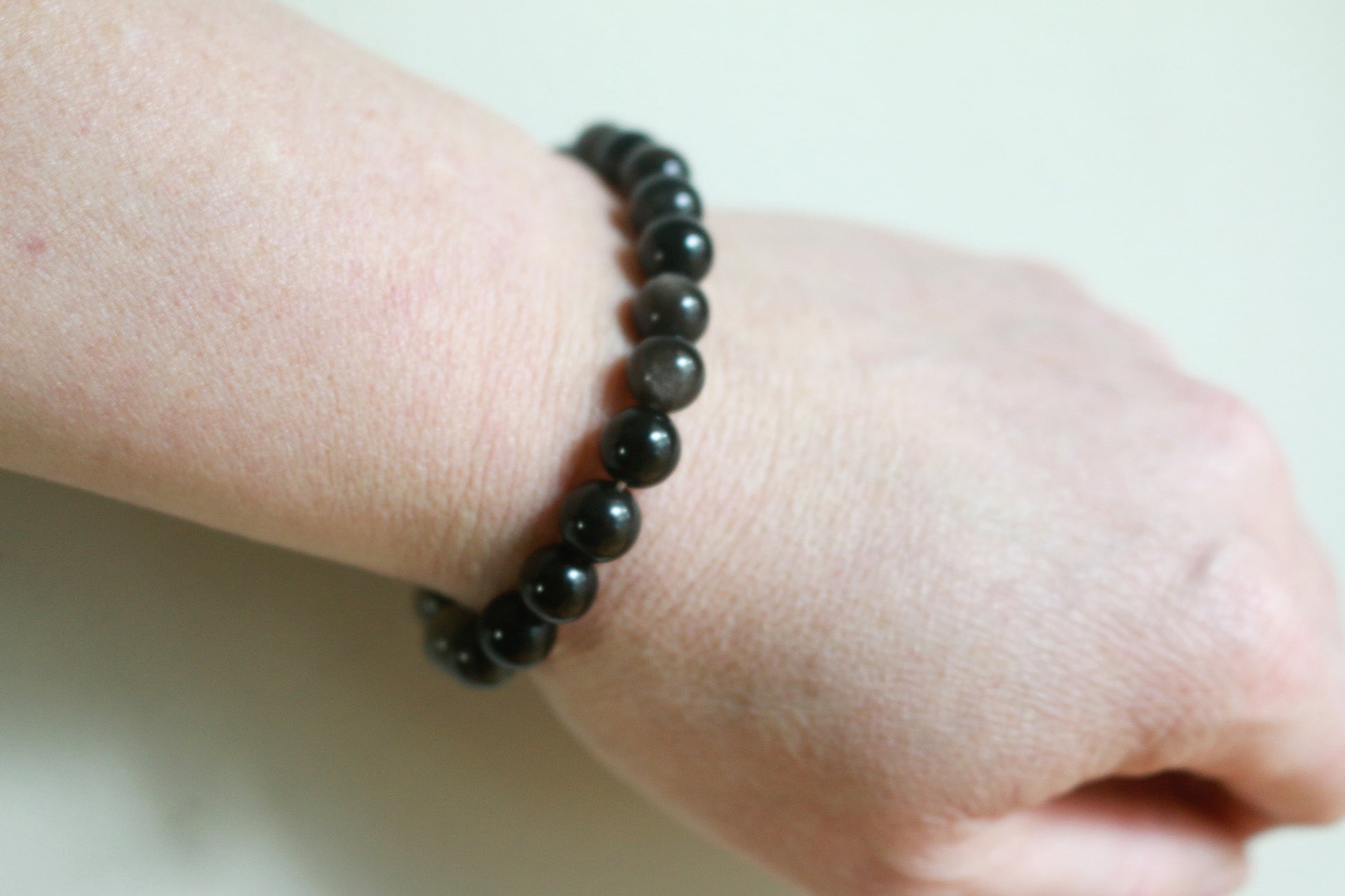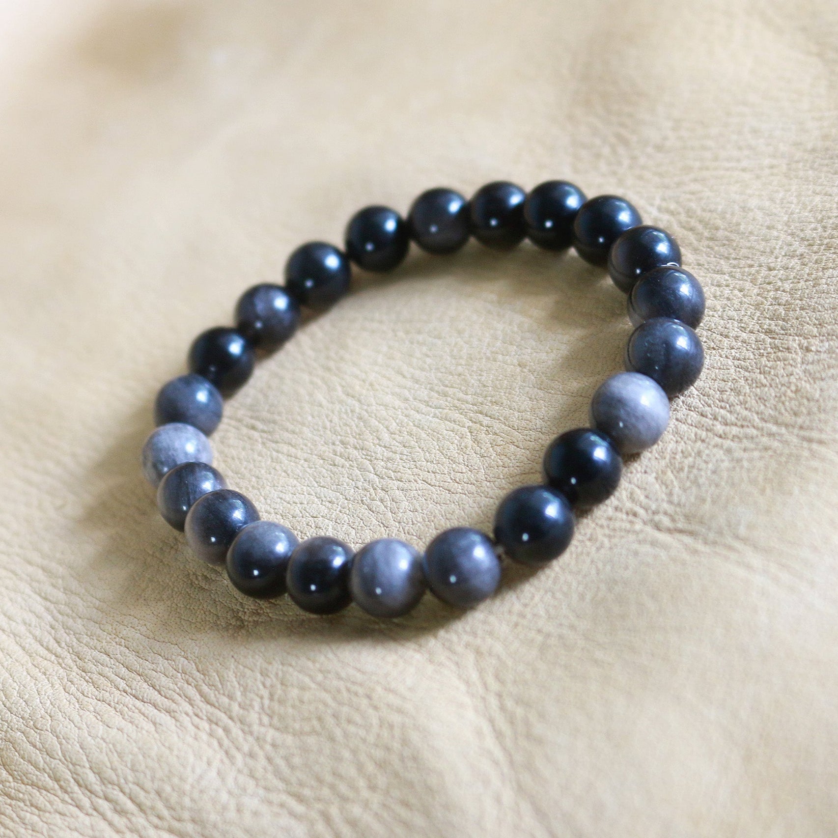 Stretch fit 8mm Silver Sheen Obsidian bracelet.