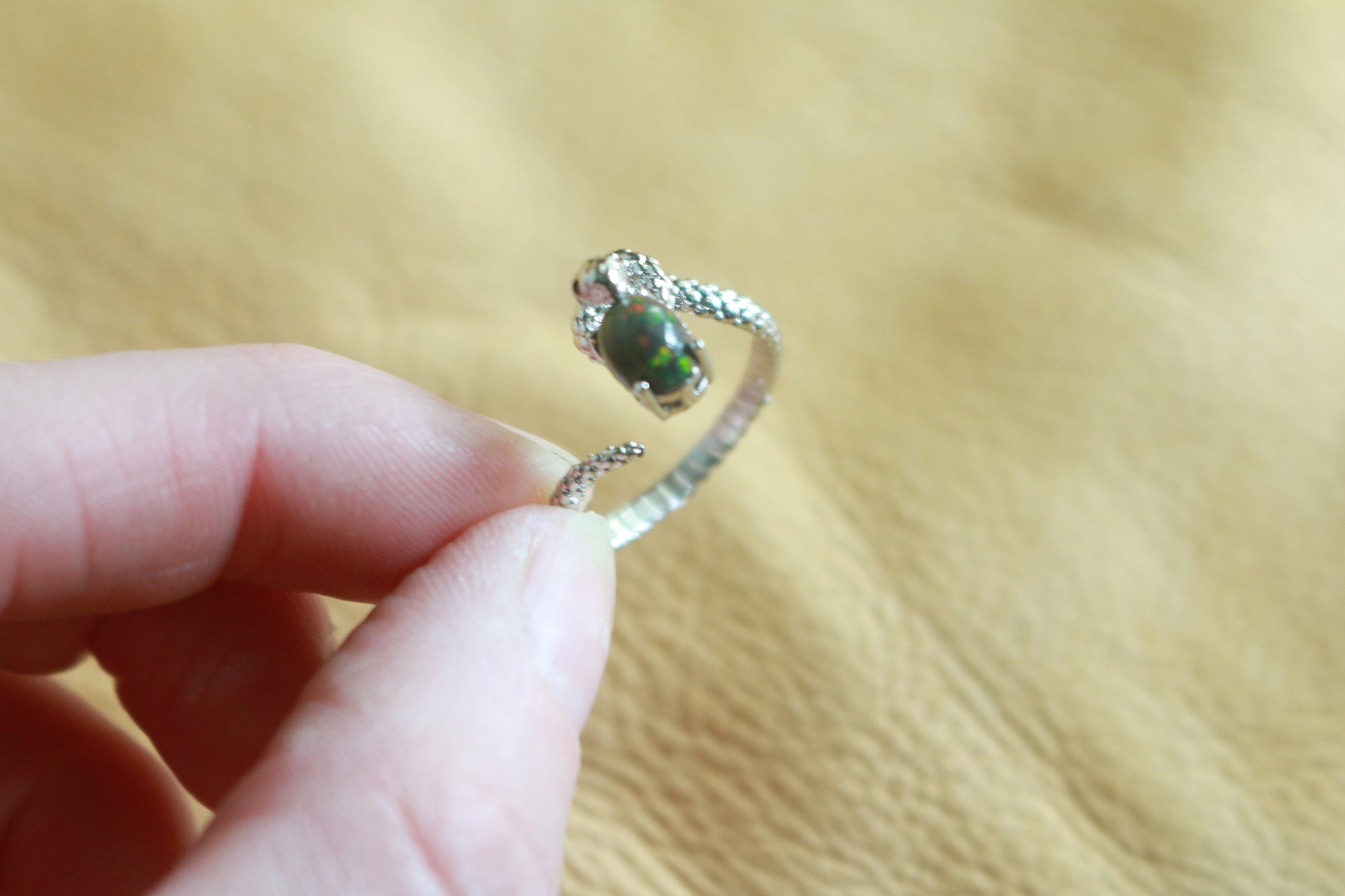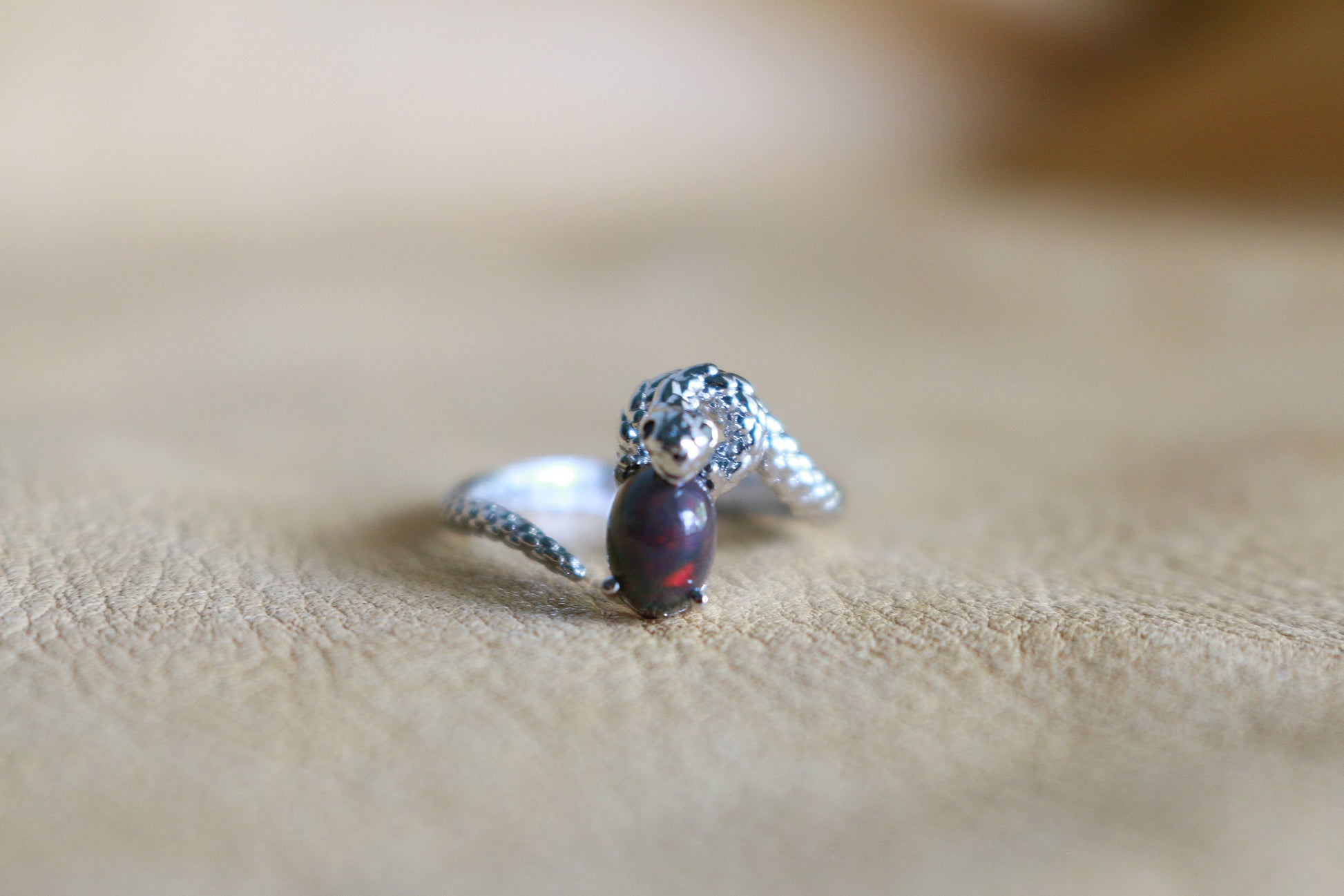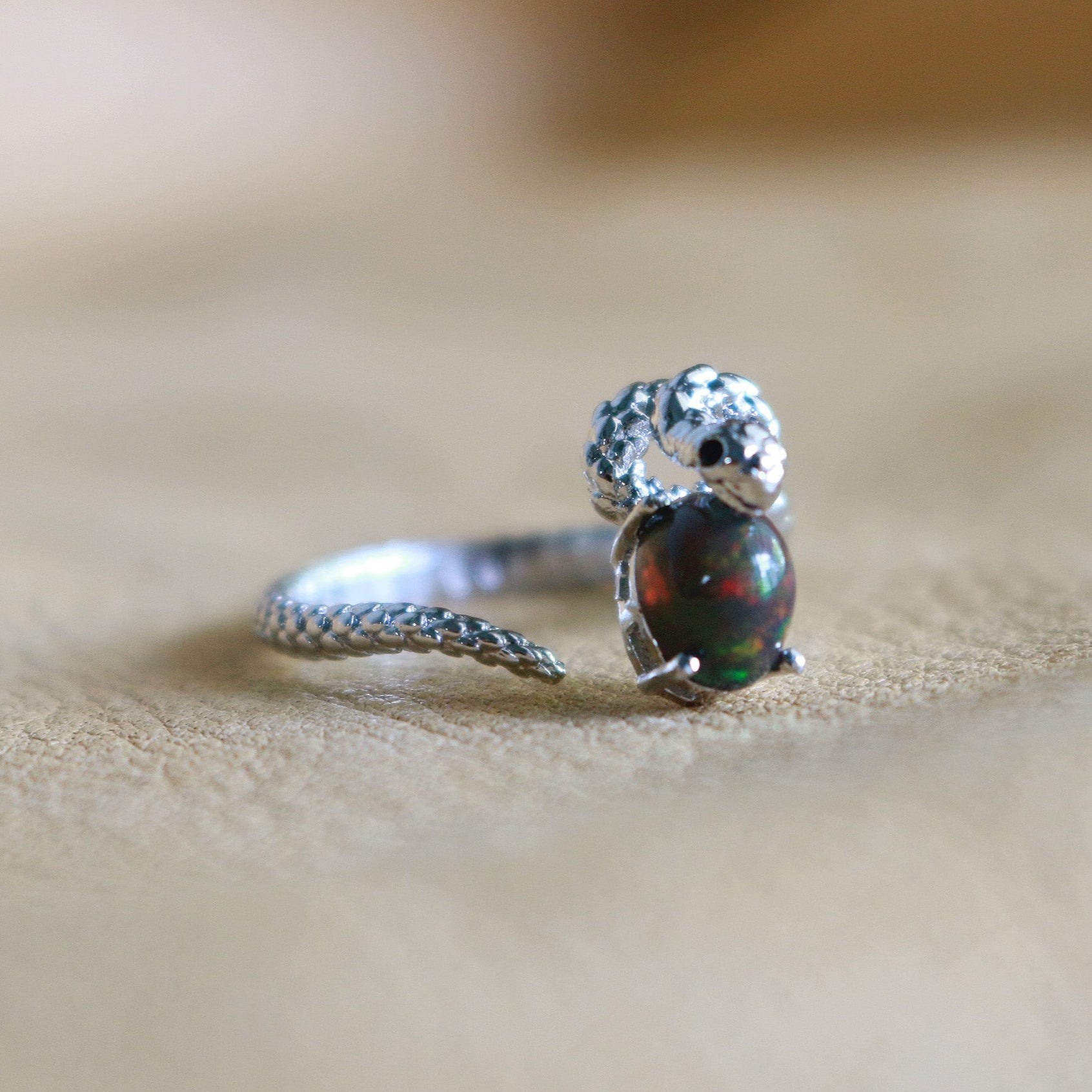 Snake Black Opal Adjustable Ring