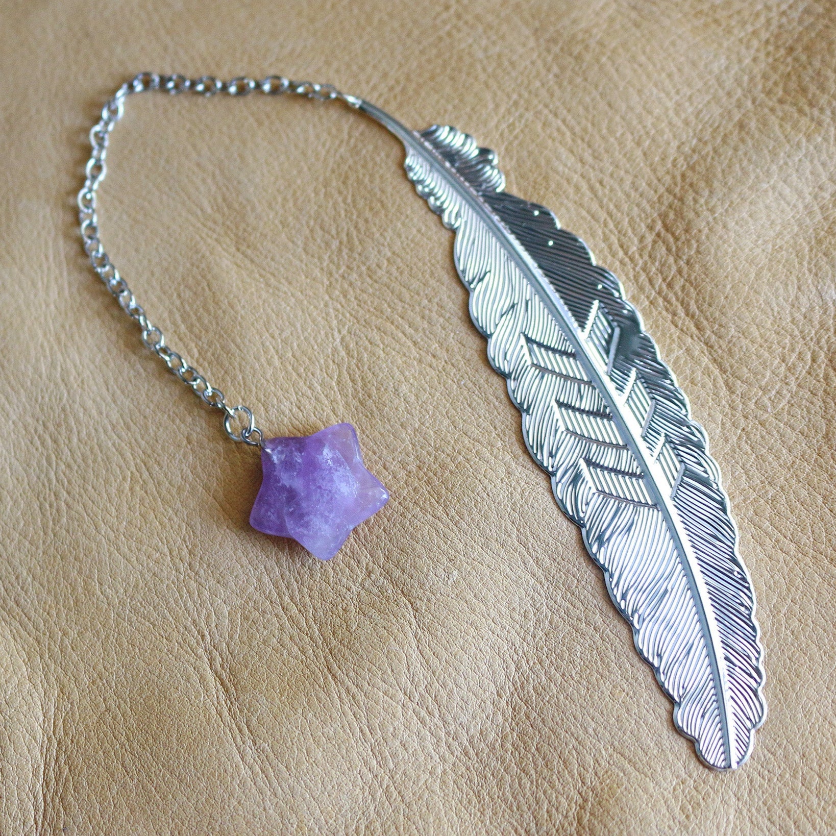 10 inch Feather Bookmark with stone star (stone chosen at random).