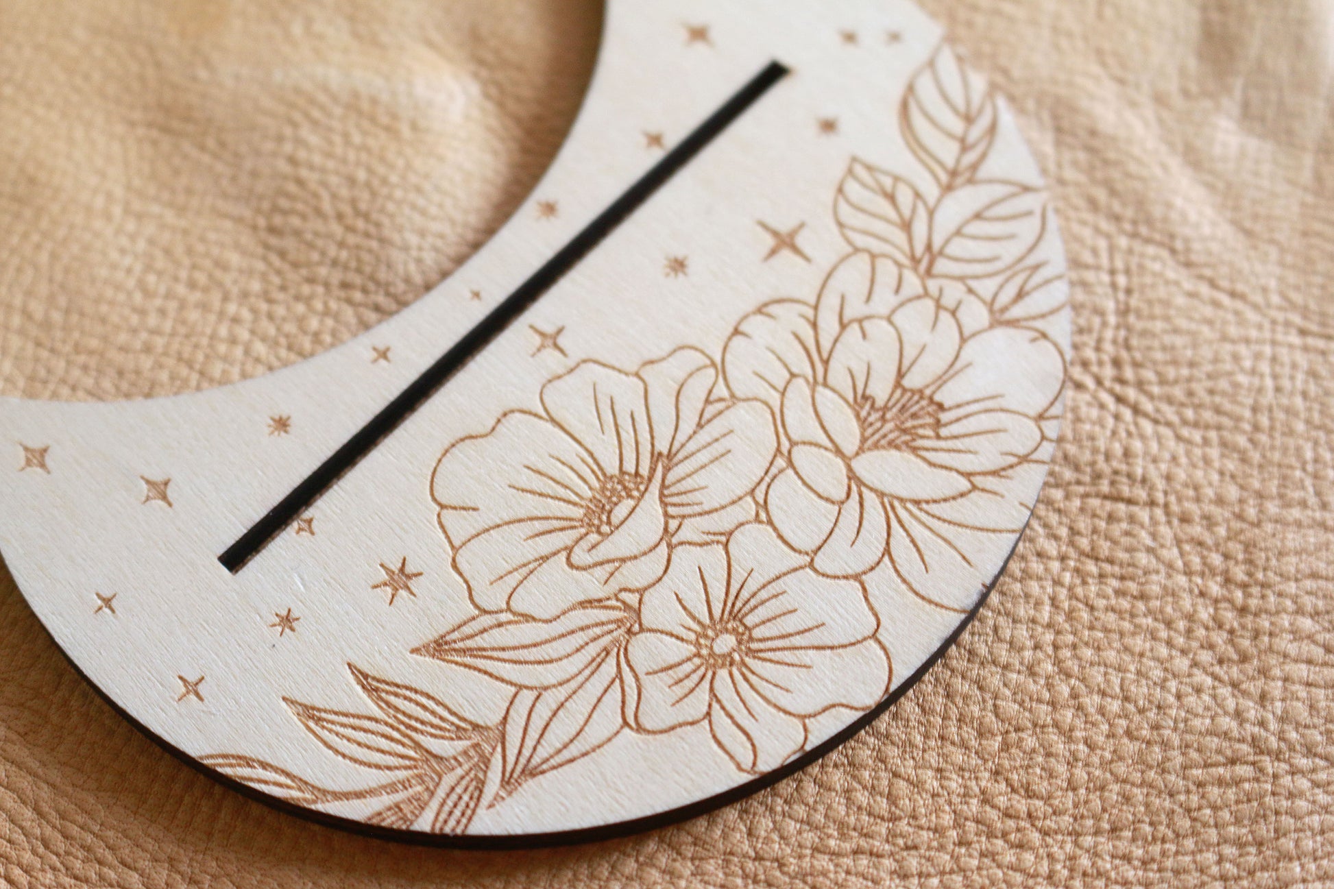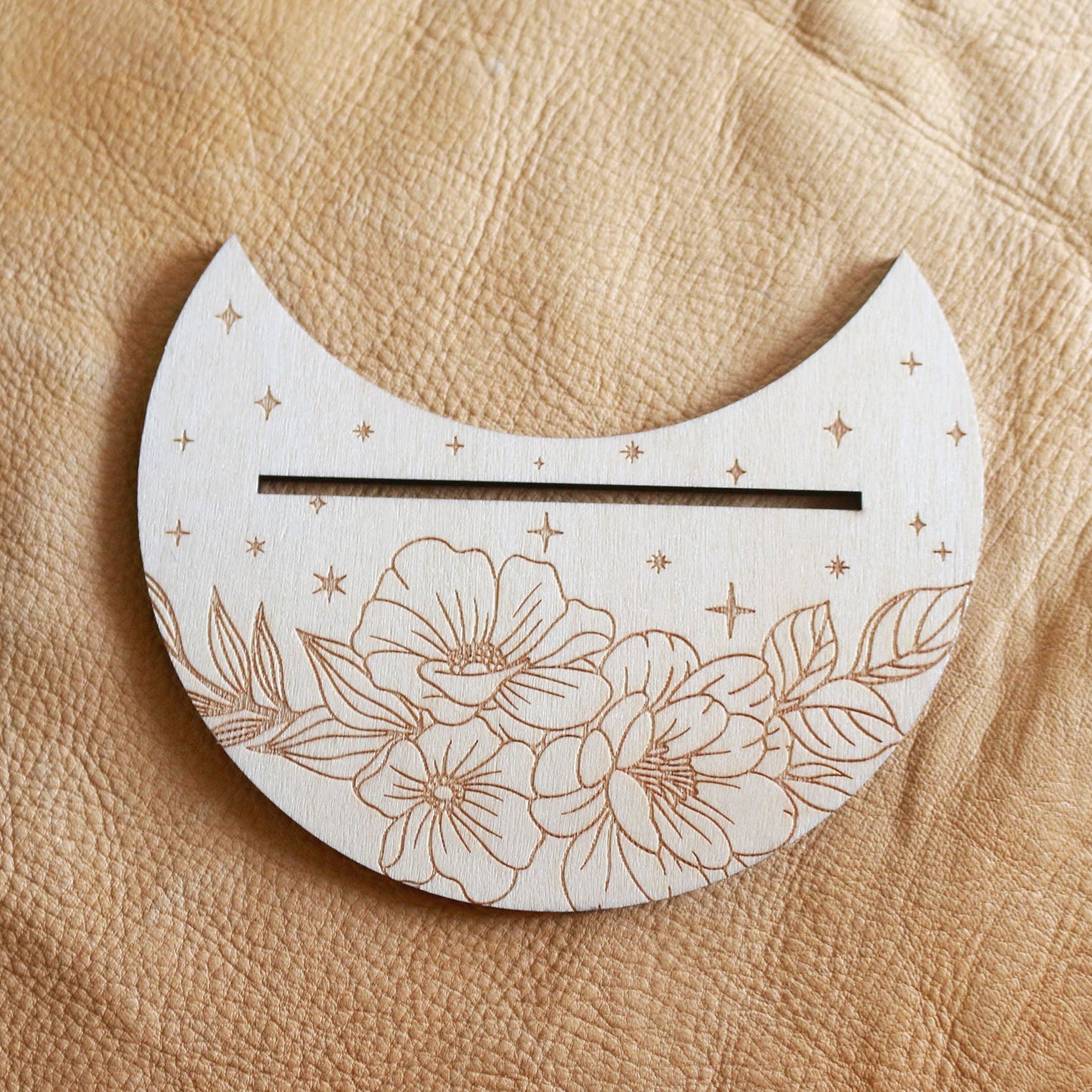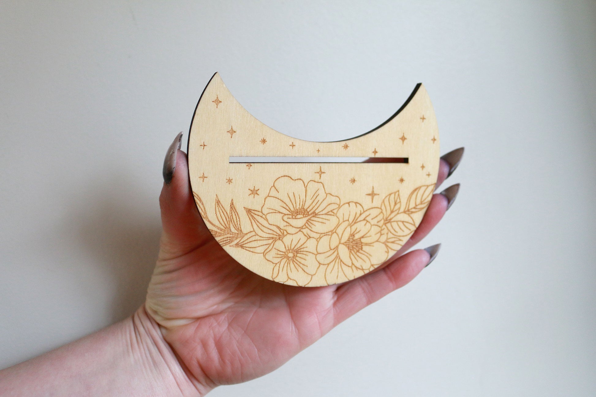 Measures 5in wide x 3in tall x 1/8in thick The slot for the Tarot Card is 4in wide.