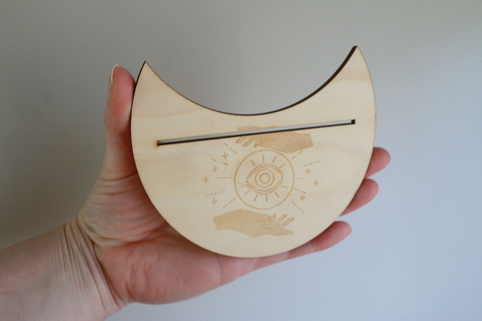 Measures 5in wide x 3in tall x 1/8in thick The slot for the Tarot Card is 4in wide.