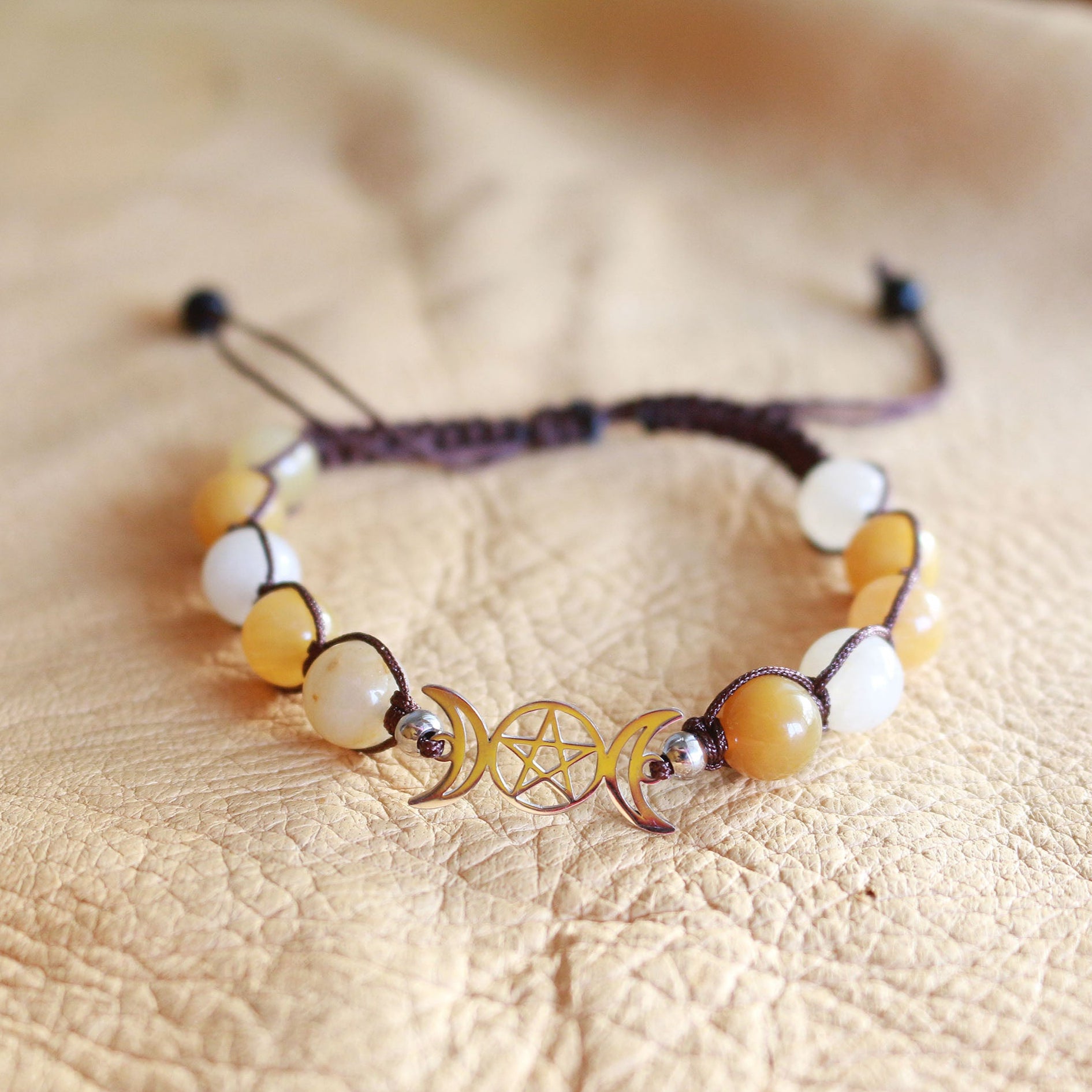Adjustable fit Triple Moon Bracelet - Gold Aventurine.