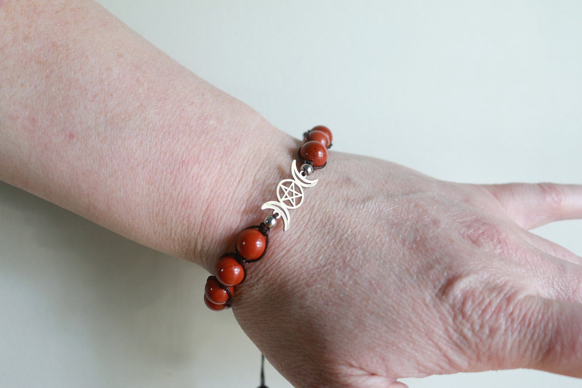 Adjustable fit Triple Moon Bracelet - Red Jasper.