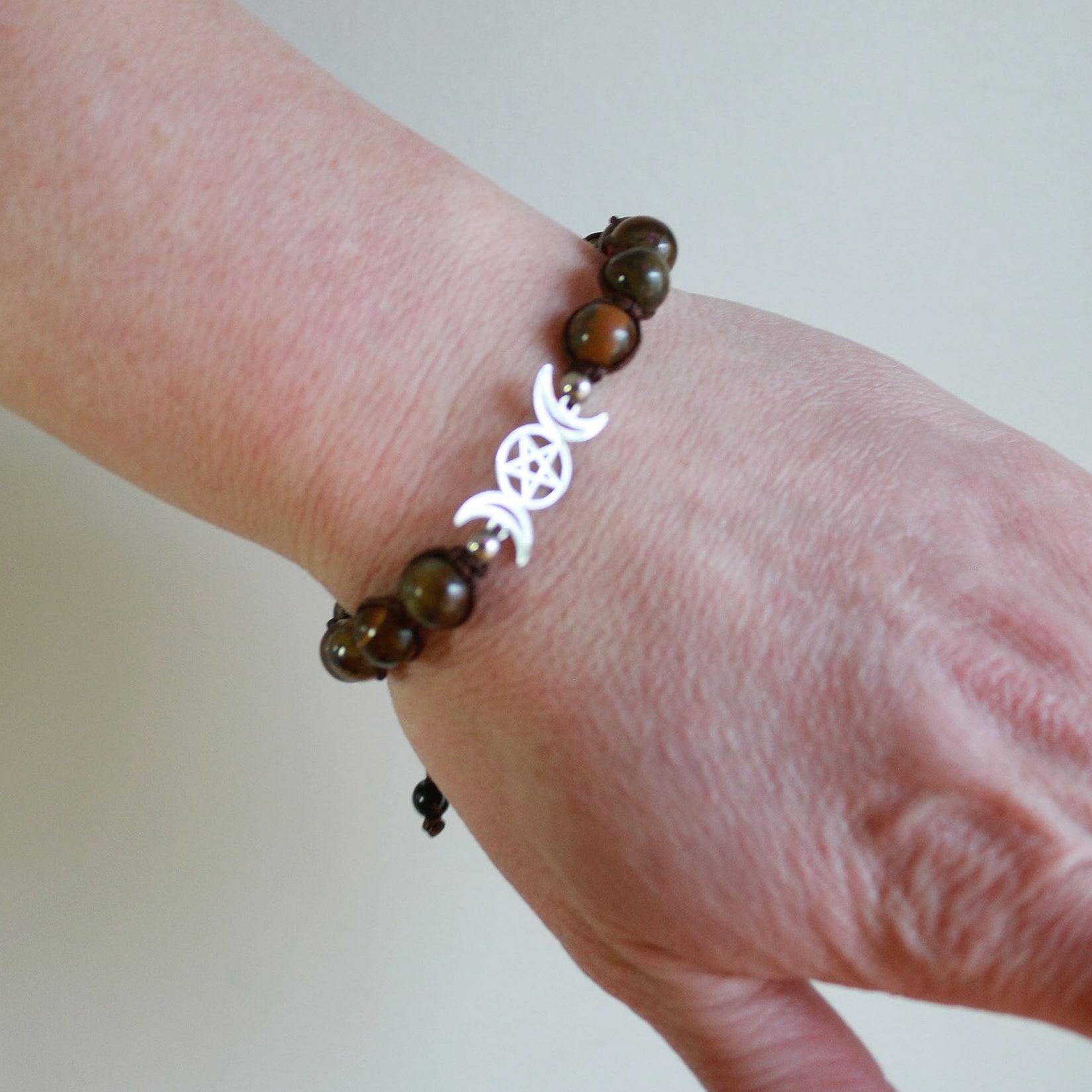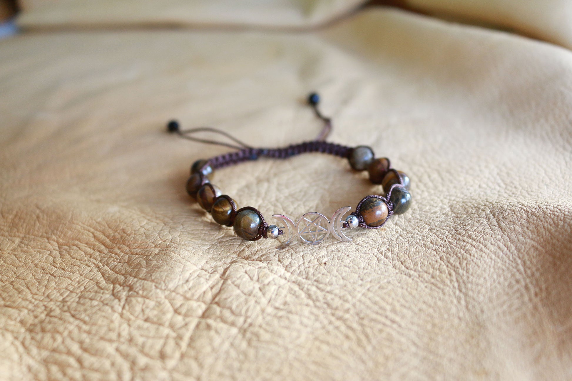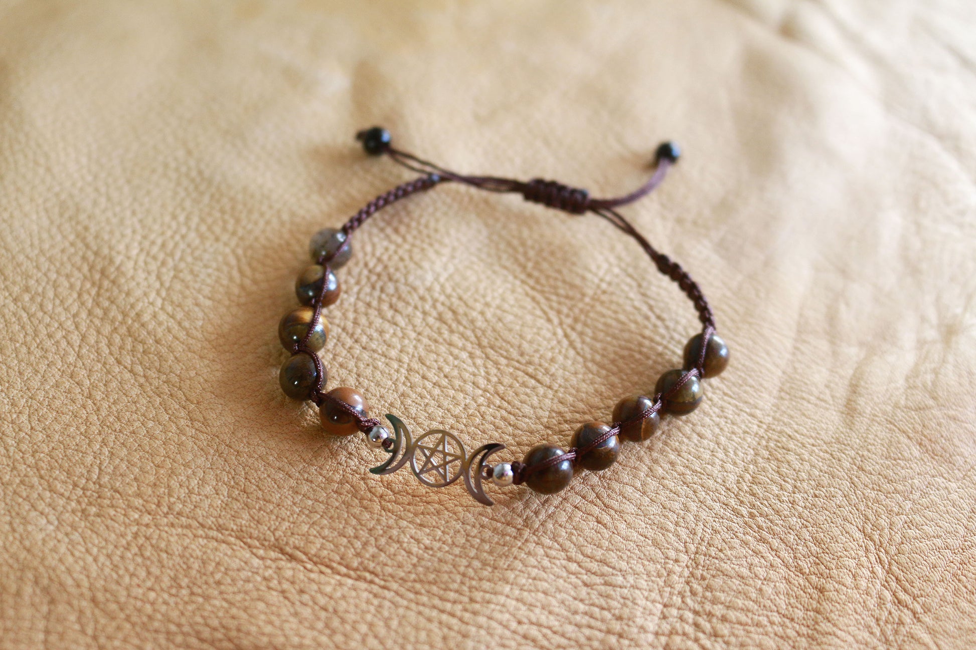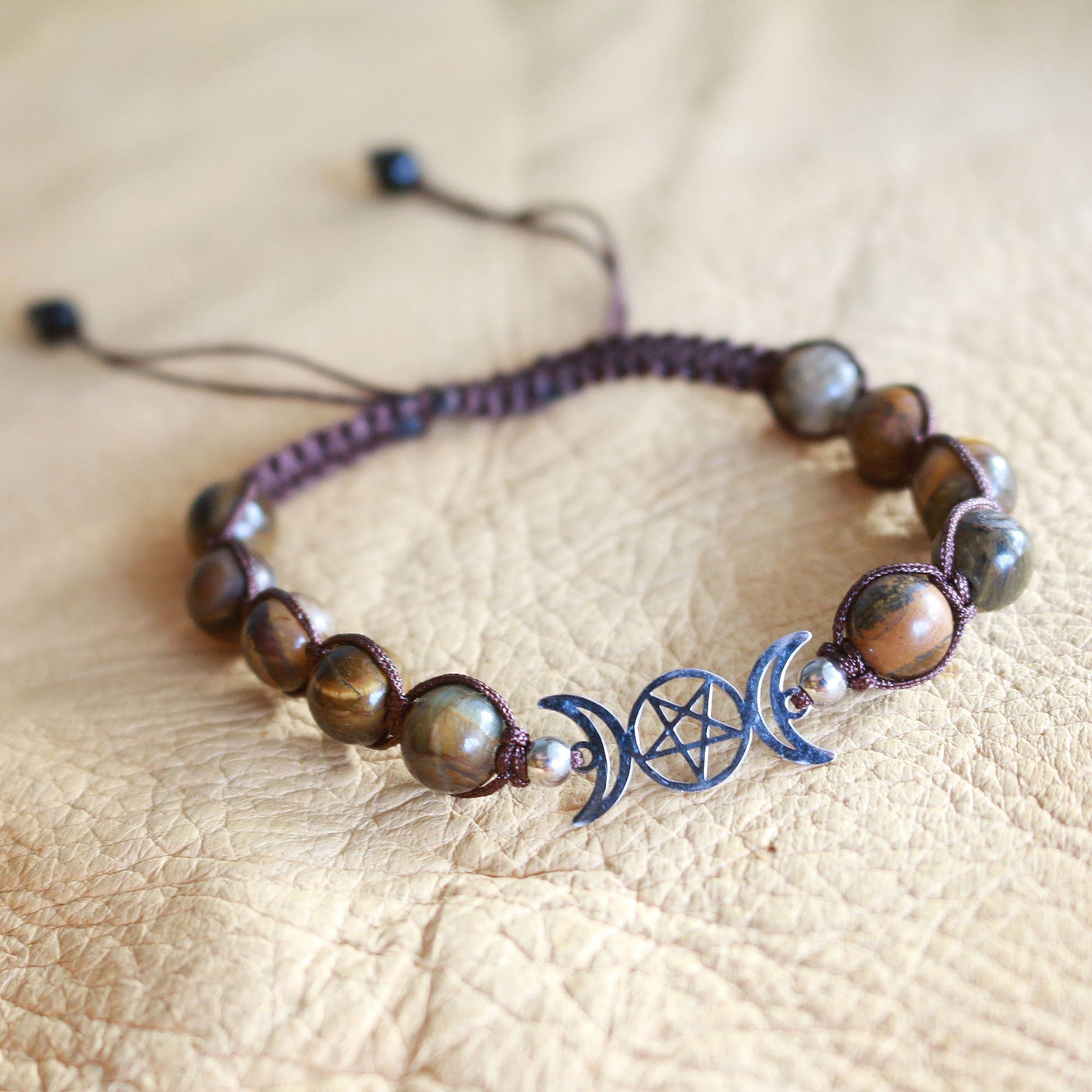 Adjustable fit Triple Moon Bracelet - Tiger Eye.