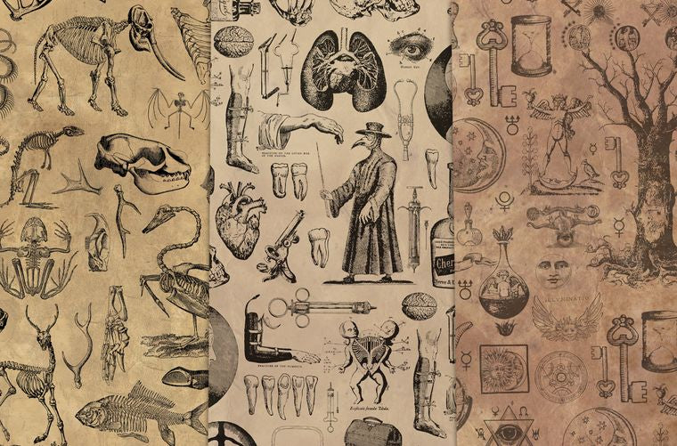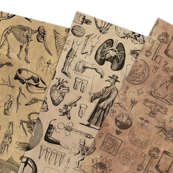Vintage Wrapping Paper [3 Styles] Flat Pack - Animal Bones, Vintage Medical, Alchemy